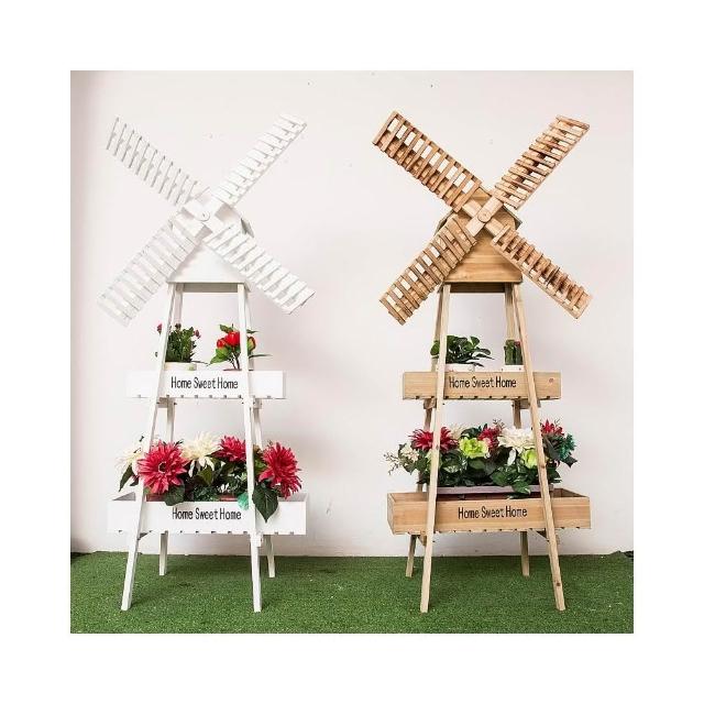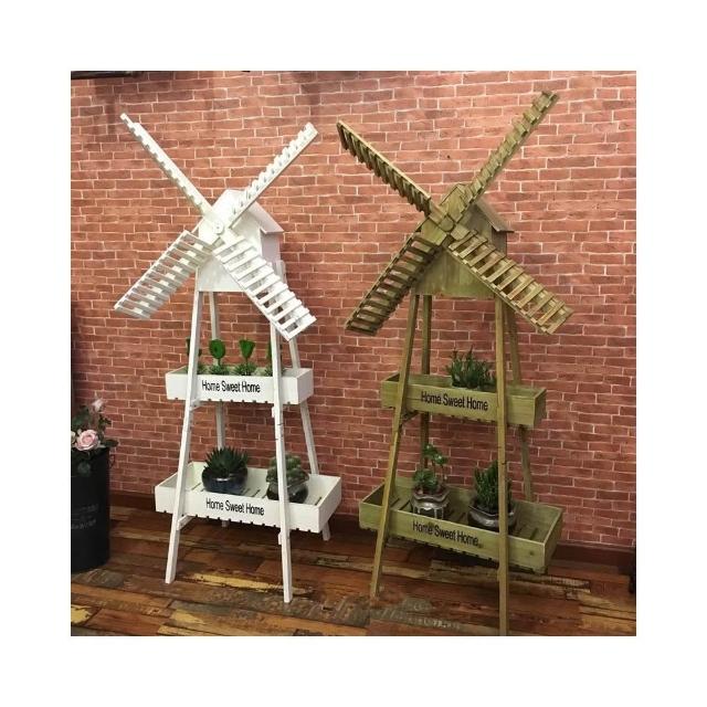 風車花架擺件實木頭戶外花園陽臺庭院木質工藝品幼稚園落地式擺設