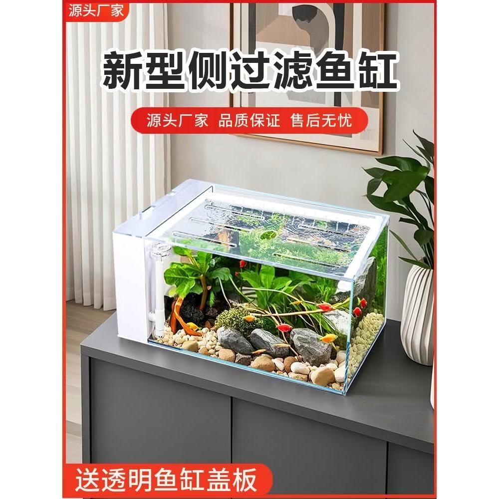 魚缸過濾制氧一體機客廳2025新款小型側濾生態溪流桌面玻璃缸懶人