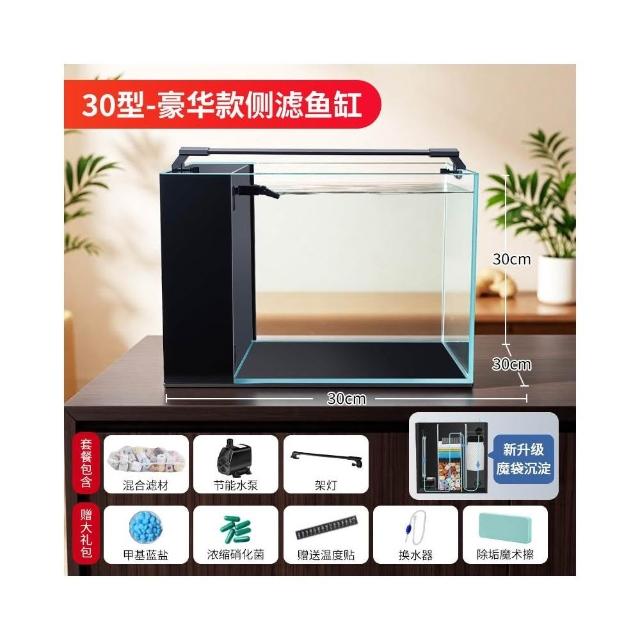魚缸過濾制氧一體機客廳2025新款小型側濾生態溪流桌面玻璃缸懶人
