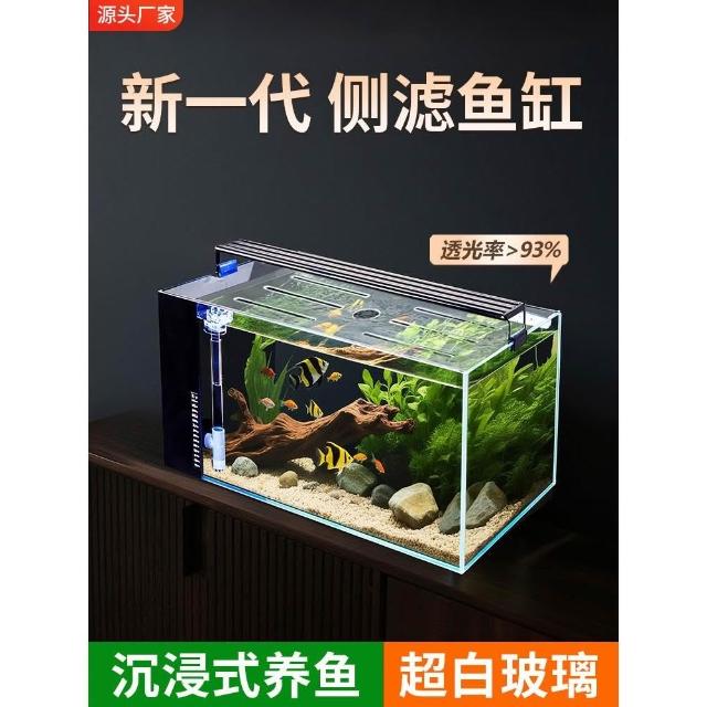魚缸過濾制氧一體機客廳2025新款小型側濾生態溪流桌面玻璃缸懶人