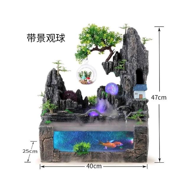 客廳假山流水噴泉迴圈水小高山小型瀑布山水魚缸水景裝飾造景擺件