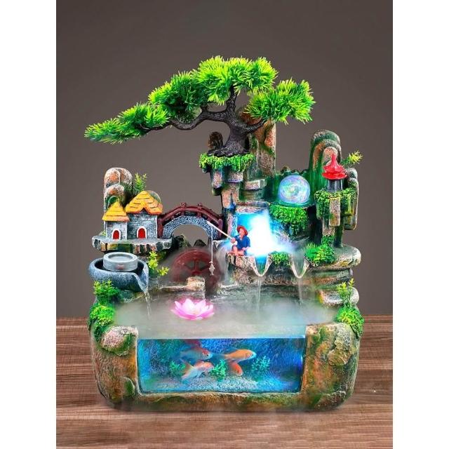 客廳假山流水噴泉迴圈水小高山小型瀑布山水魚缸水景裝飾造景擺件