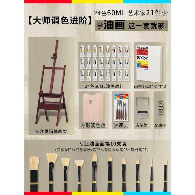 MEEDEN美迪恩櫸木畫架畫板美術生專用抽屜式油畫架支架式素描畫板架可折疊4K成人畫家架繪畫架子套裝工具全套