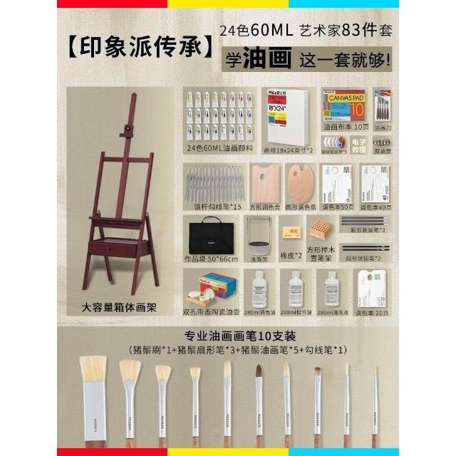 MEEDEN美迪恩櫸木畫架畫板美術生專用抽屜式油畫架支架式素描畫板架可折疊4K成人畫家架繪畫架子套裝工具全套