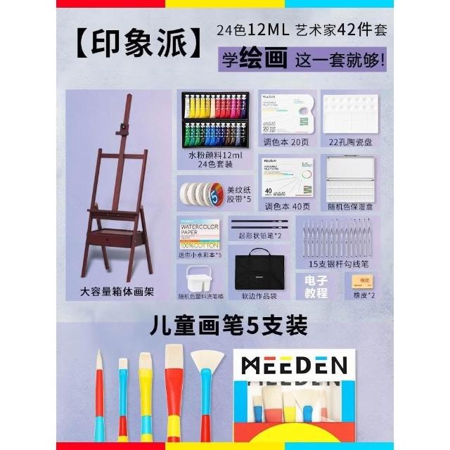 MEEDEN美迪恩櫸木畫架畫板美術生專用抽屜式油畫架支架式素描畫板架可折疊4K成人畫家架繪畫架子套裝工具全套