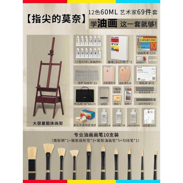 MEEDEN美迪恩櫸木畫架畫板美術生專用抽屜式油畫架支架式素描畫板架可折疊4K成人畫家架繪畫架子套裝工具全套