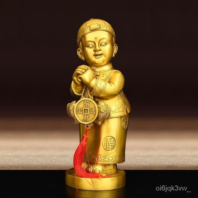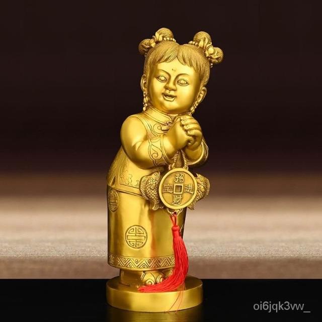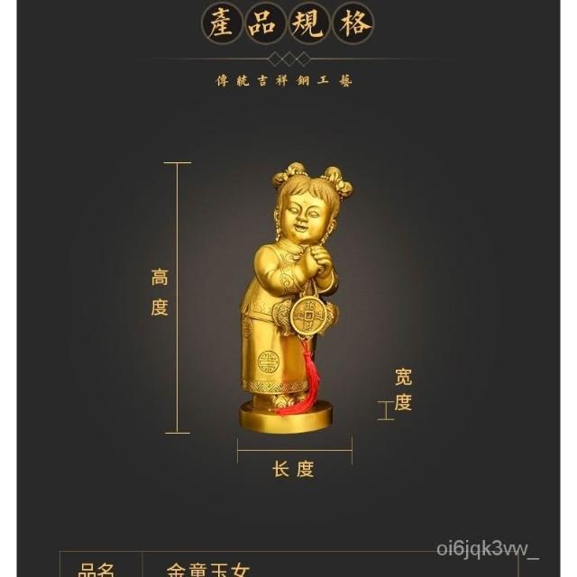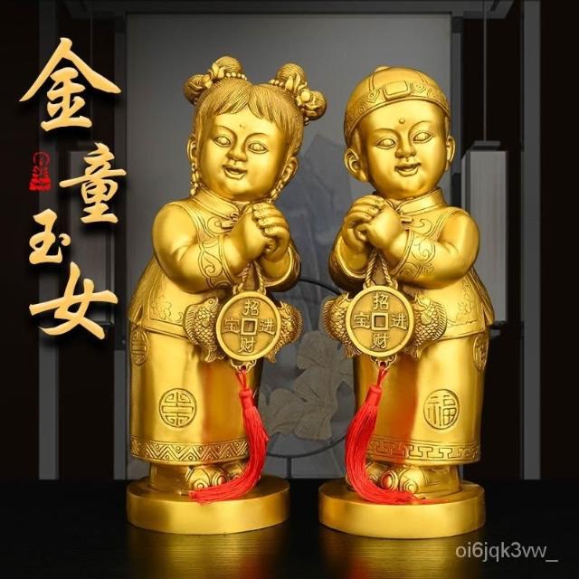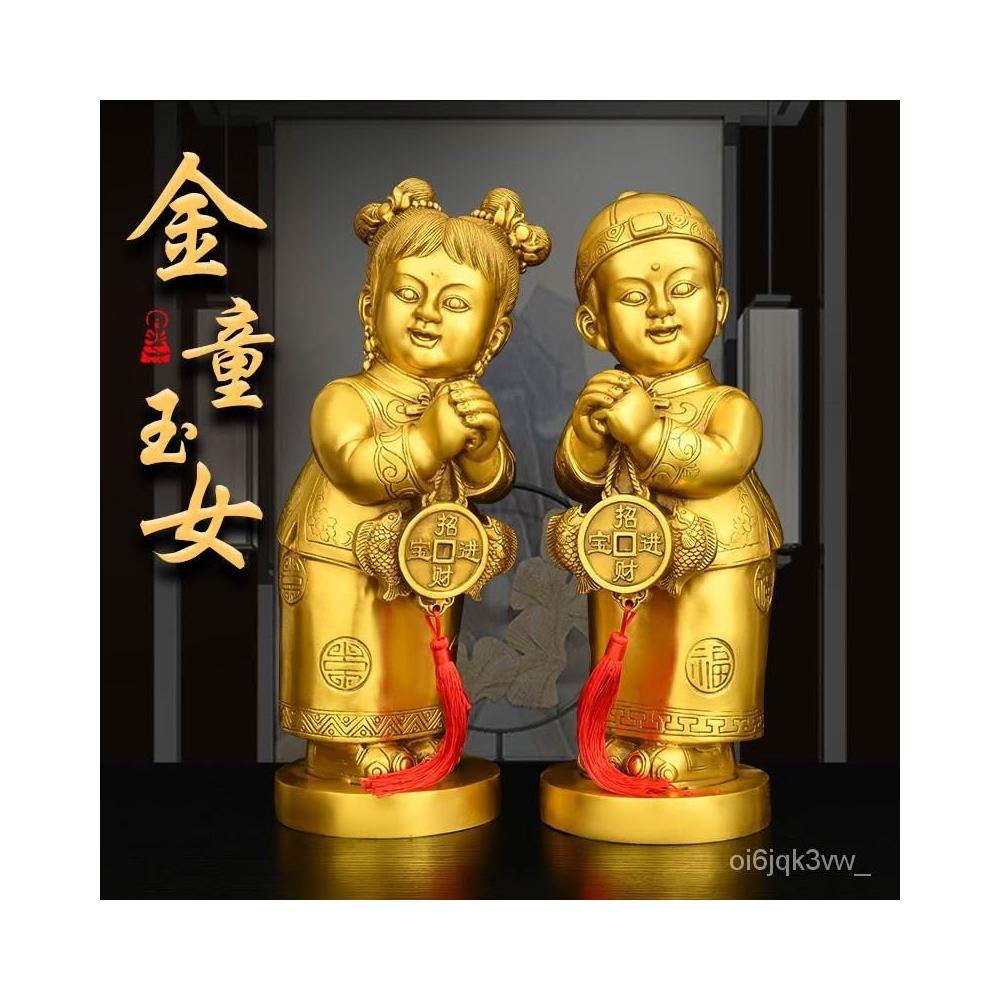 #免運#熱賣#三聯發票 金童玉女擺件純銅善財童子龍女佛像一對童男童女傢居裝飾結婚禮品