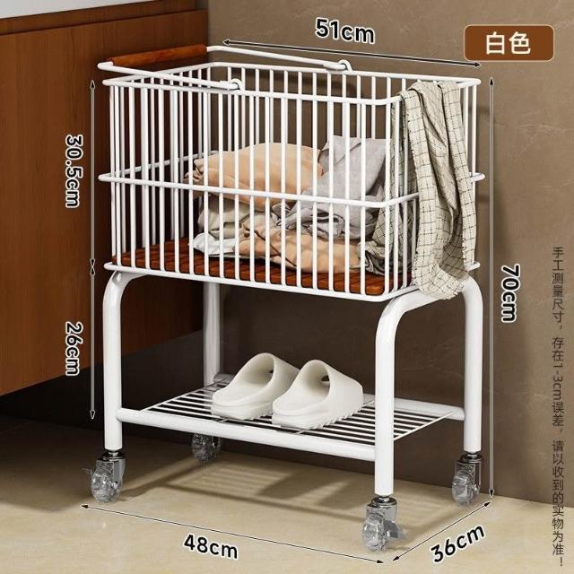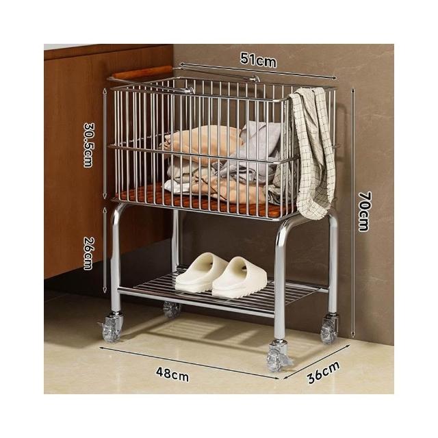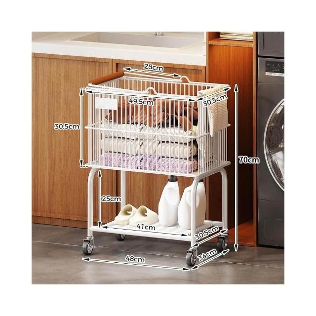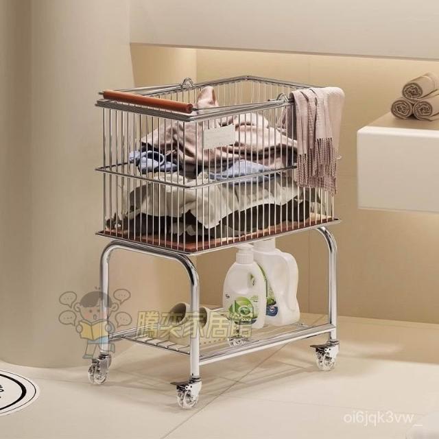 #免運#熱賣#居家 中古臟衣籃浴室雙層衣服收納籃衛生間移動洗衣籃臟衣簍推車置物架