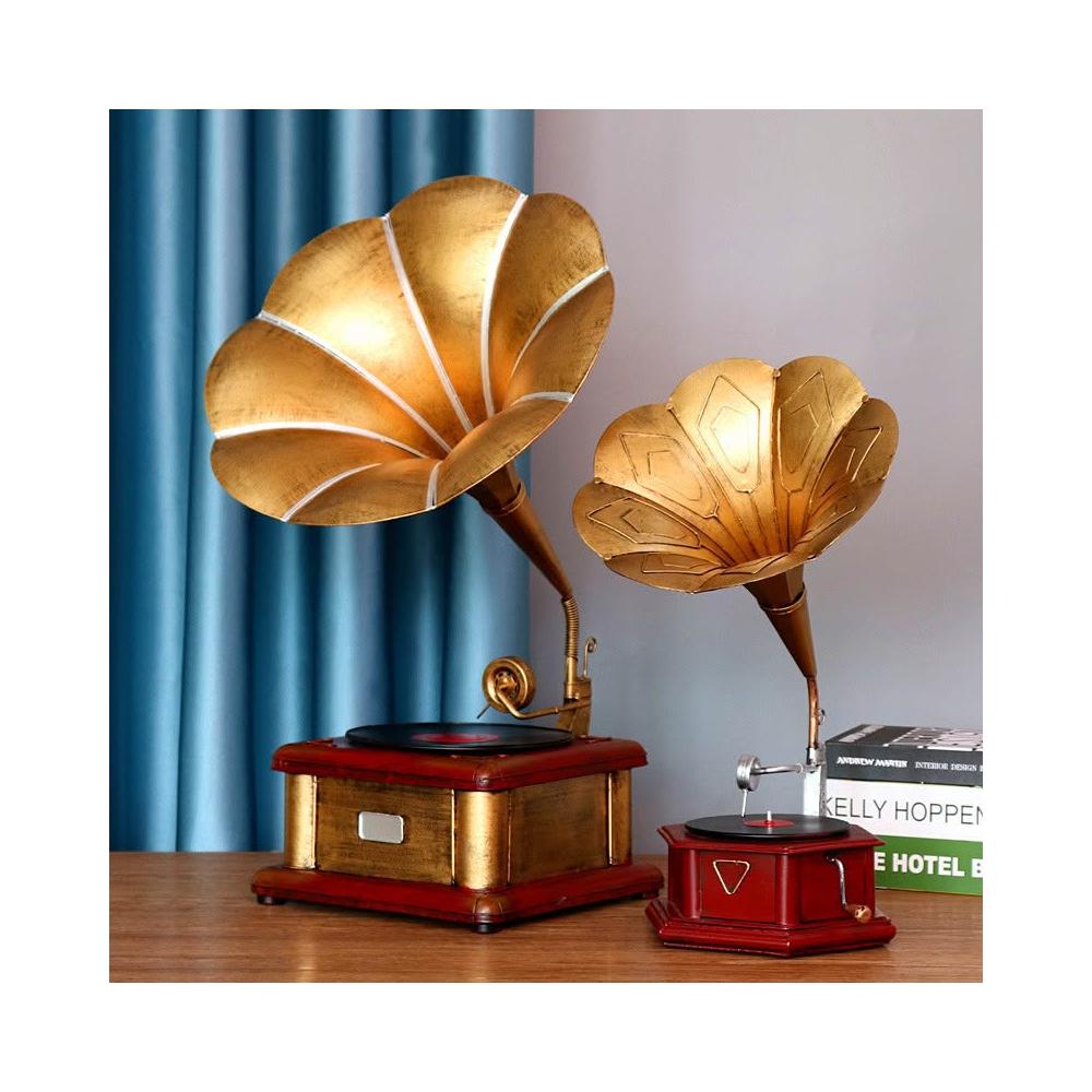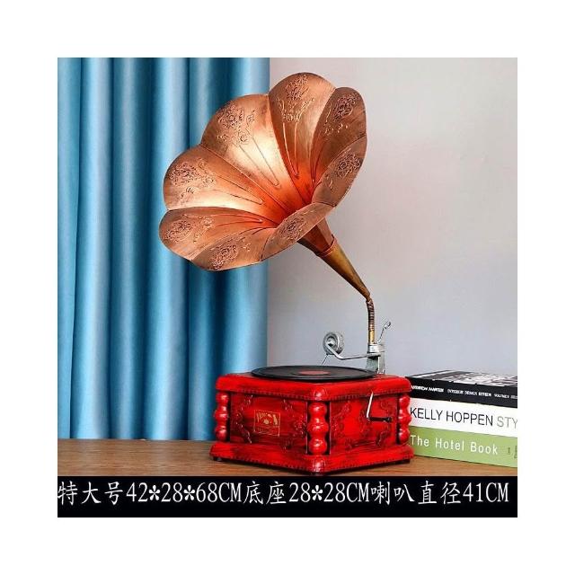 ✨可開統編 免運 复古老式大喇叭留声机模型摆件黑胶唱片机创意家居软装饰摄影道具
