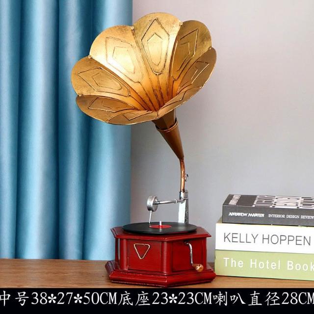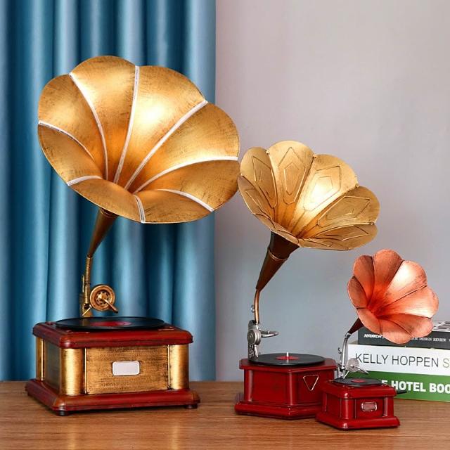 ✨可開統編 免運 复古老式大喇叭留声机模型摆件黑胶唱片机创意家居软装饰摄影道具
