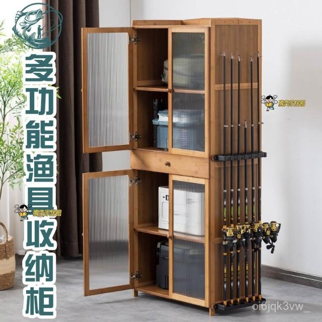 #熱賣#免運#三聯發票#居家 漁具店多功能魚竿架展示架家用魚竿收納櫃路亞竿手竿帶抽屜魚竿櫃