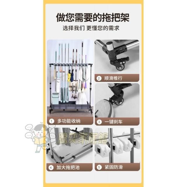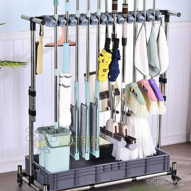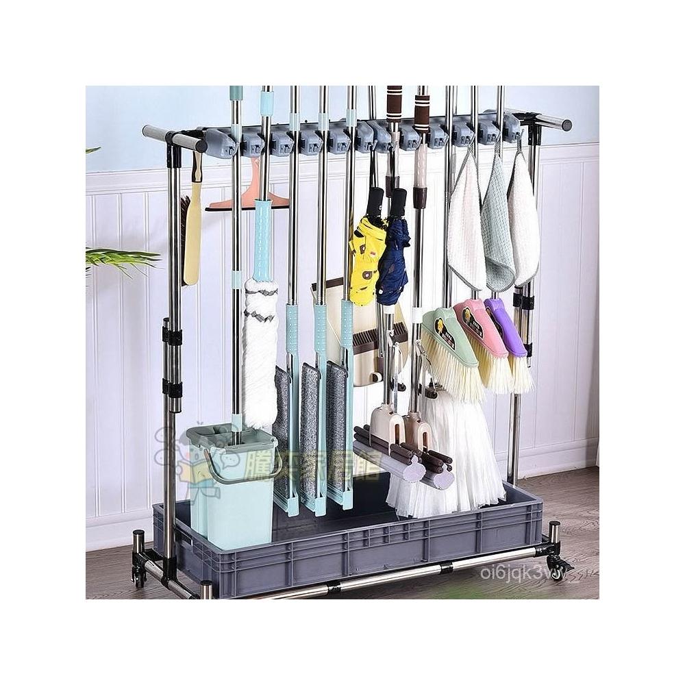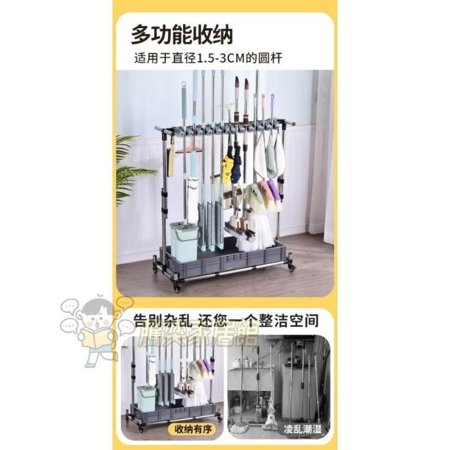 不銹鋼移動拖把架落地式放掃把拖布家用清潔工具地拖收納置物架子