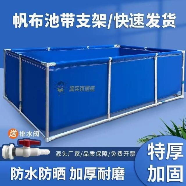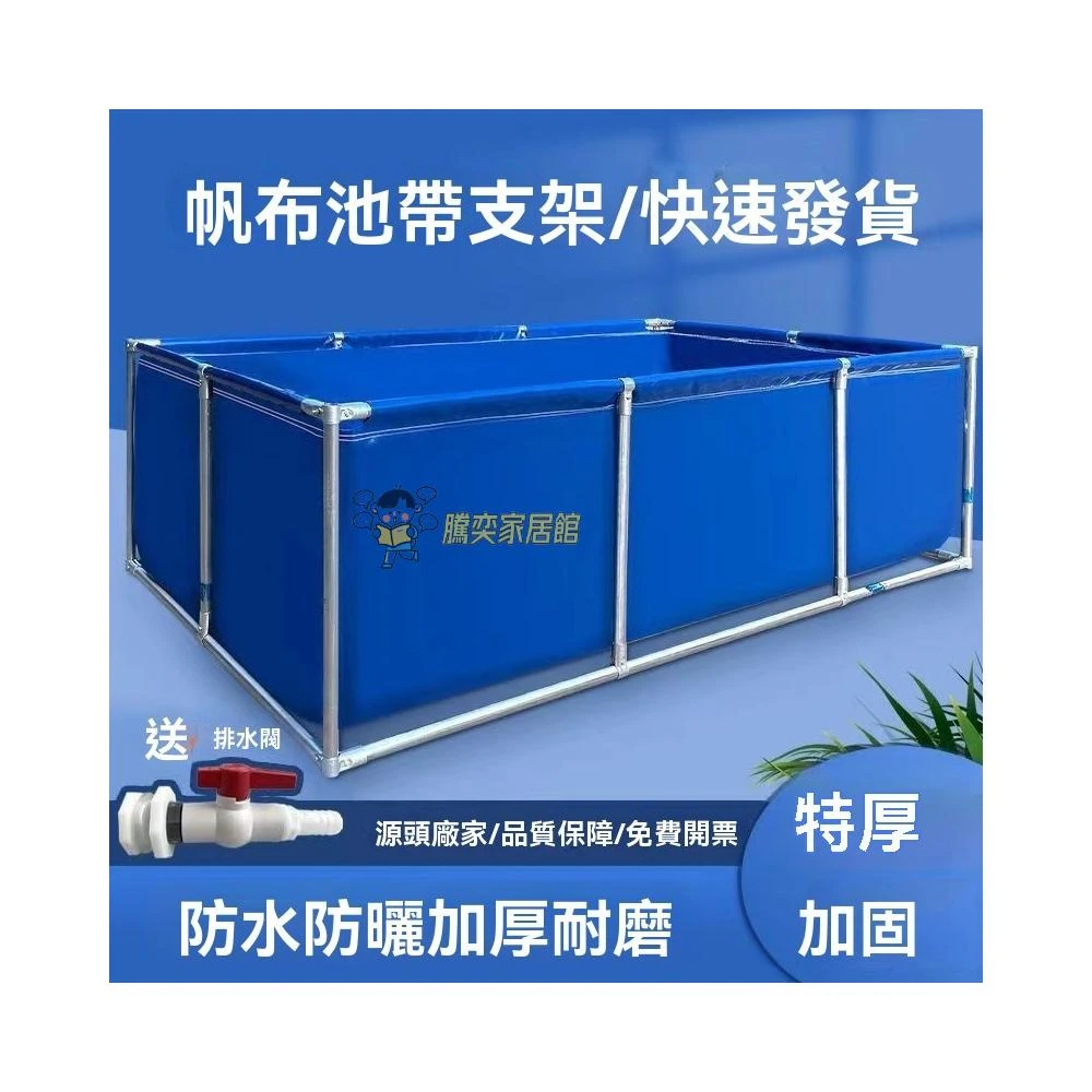 帶支架帆布魚池加厚養殖水池 戶外游泳池防水布蓄水池家用養魚池