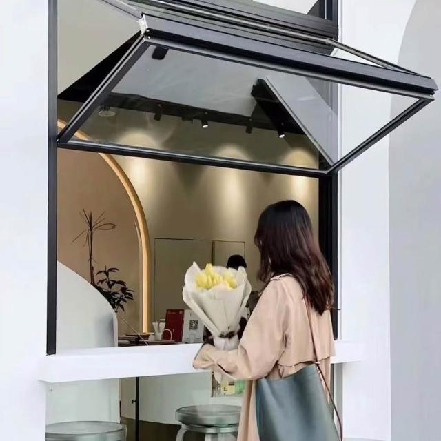 上下折疊窗鋁閤金全開窗咖啡奶茶店廚房吧臺窗玻璃陞降懸停推拉窗