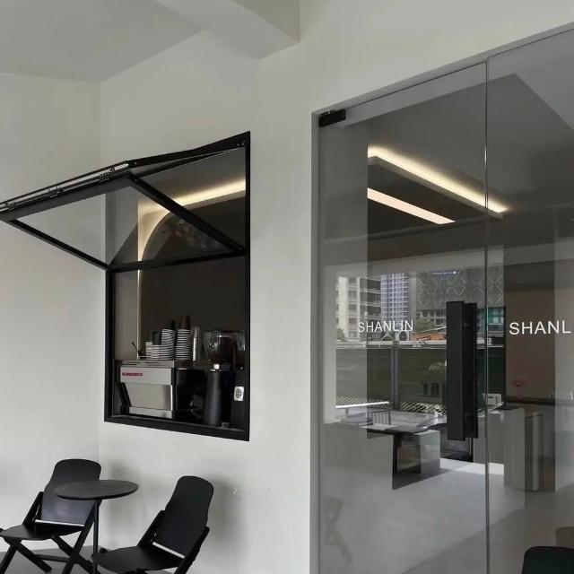 上下折疊窗鋁閤金全開窗咖啡奶茶店廚房吧臺窗玻璃陞降懸停推拉窗