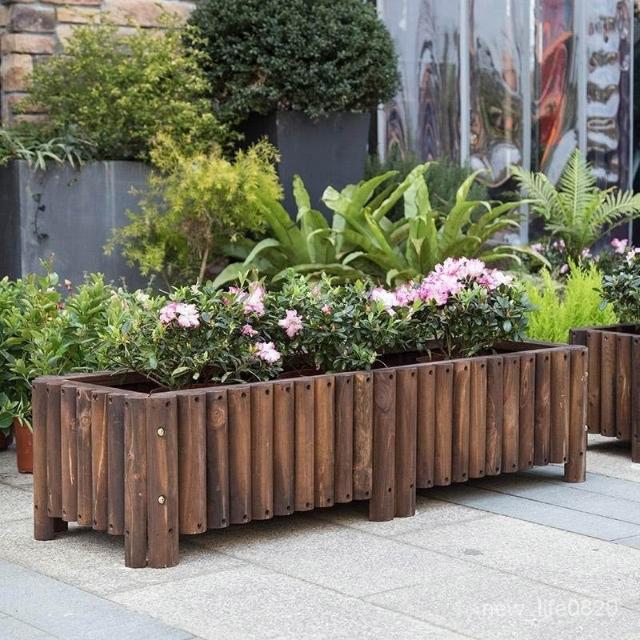 碳化防腐木花箱花池陽臺花槽戶外木質種菜盆長方形特大種植箱花盆