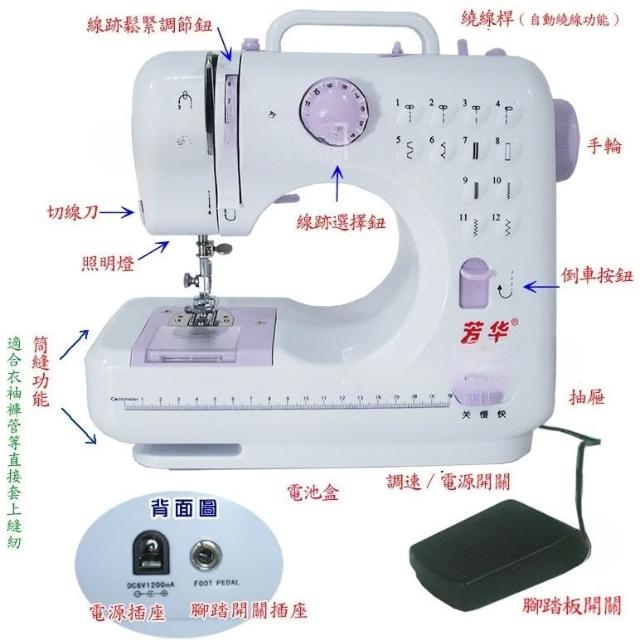 升級版電動縫紉機 12線跡可車布邊倒車.牛仔布.照明燈.雙速裁縫機附變壓器.踏板