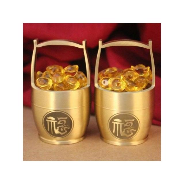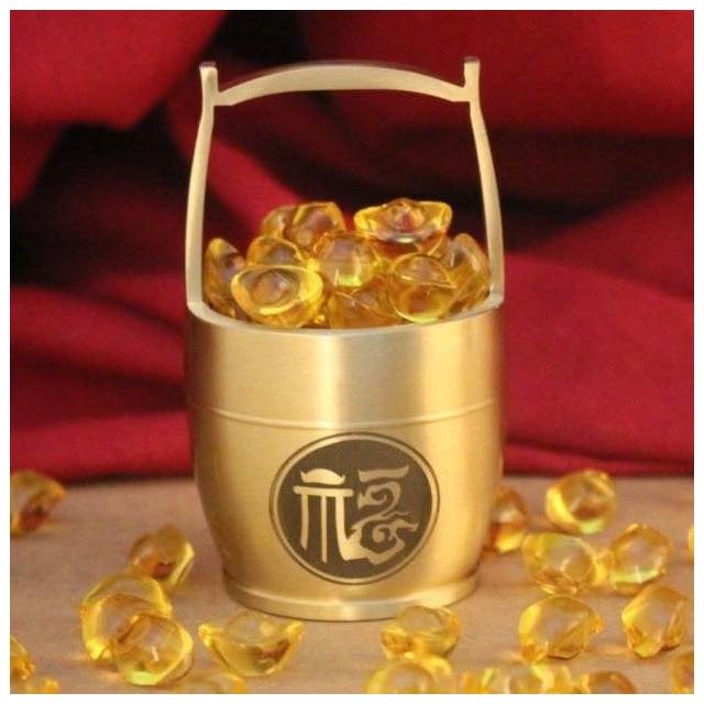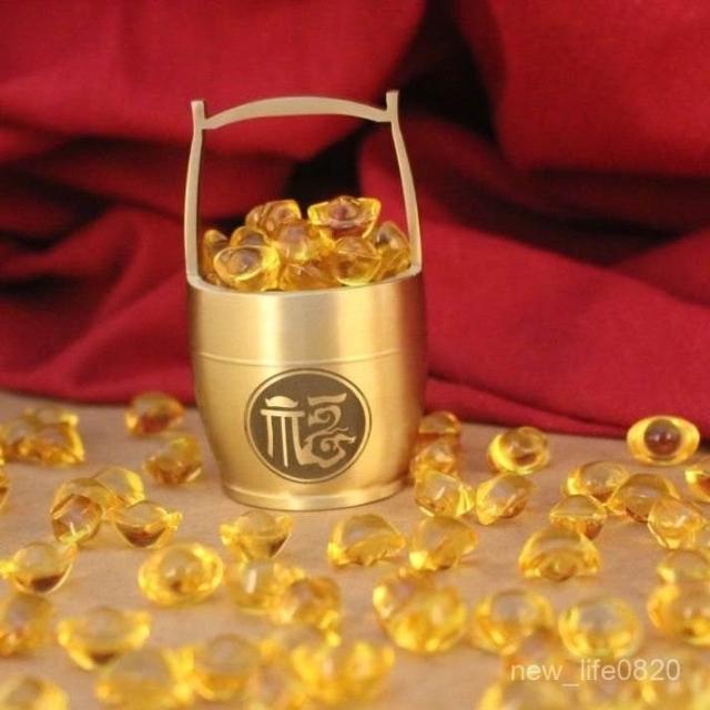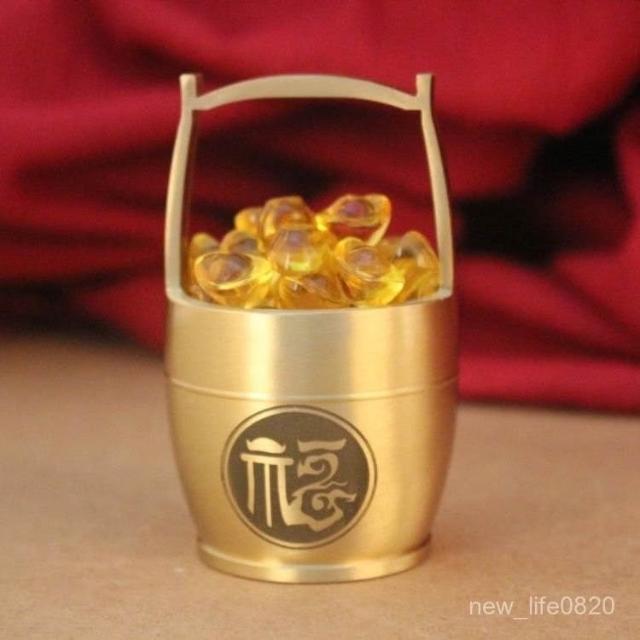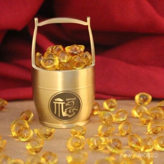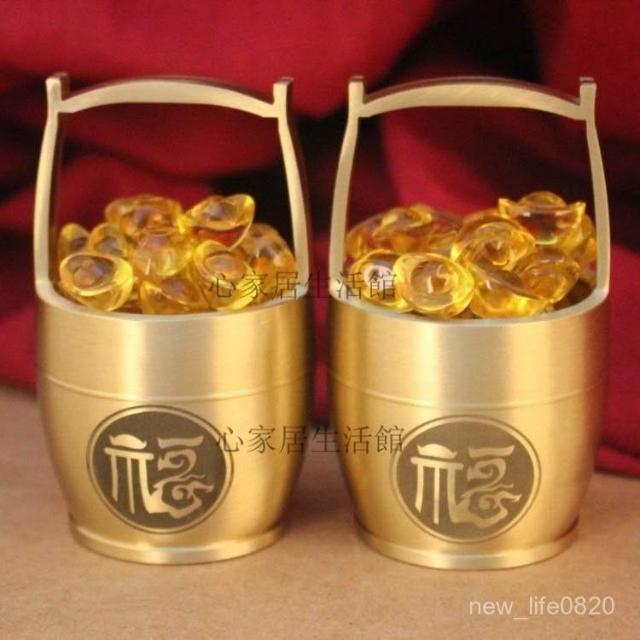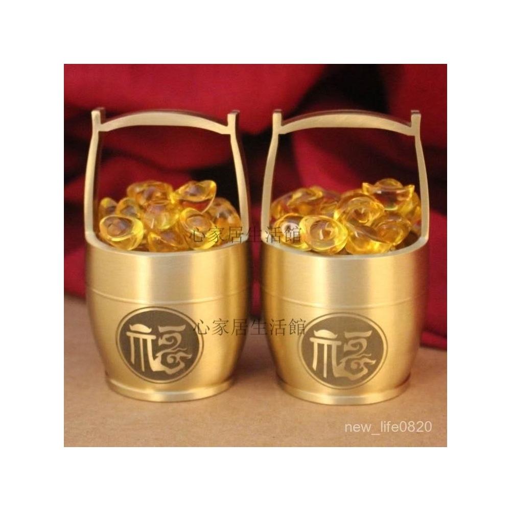 黃銅福氣一桶金招財擺件聚寶盆聚財元寶家居客廳博古架裝飾工藝品