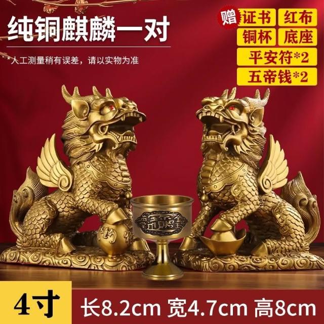 銅麒麟擺件一對純銅家用踩八卦麒麟家居辦公室桌裝飾客廳