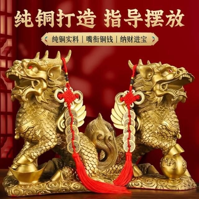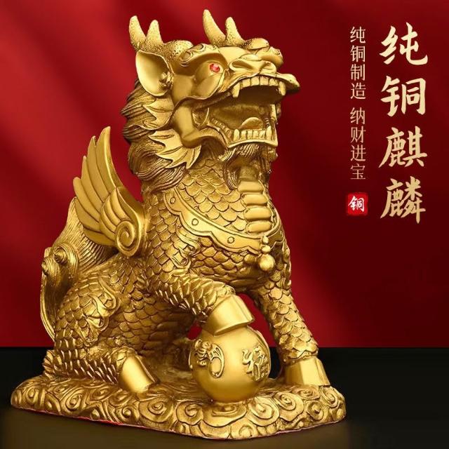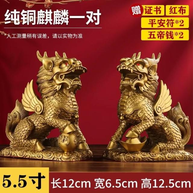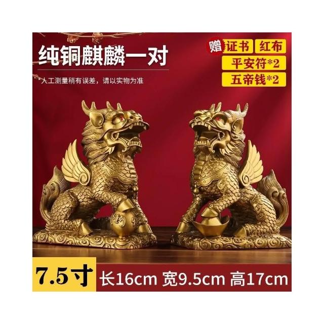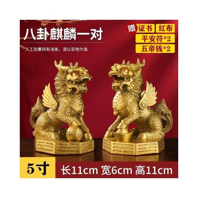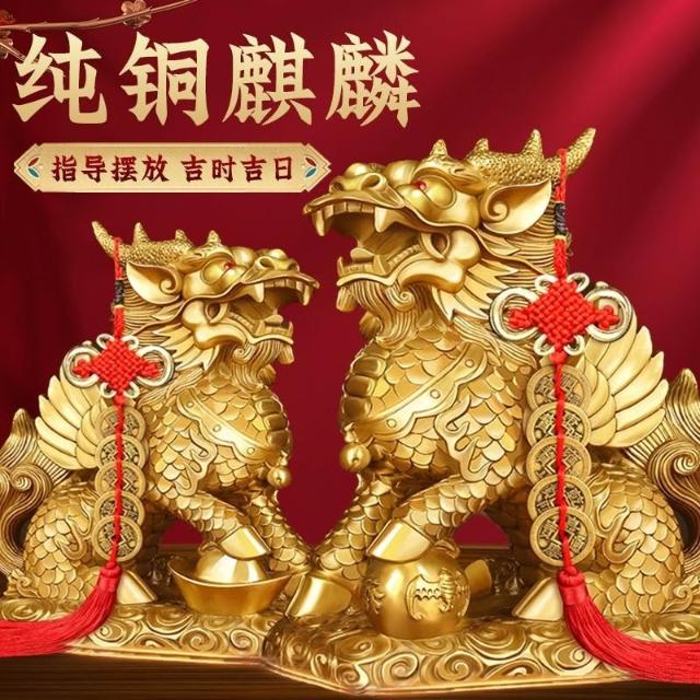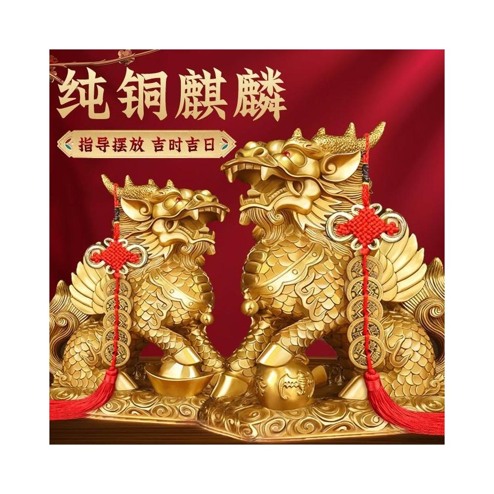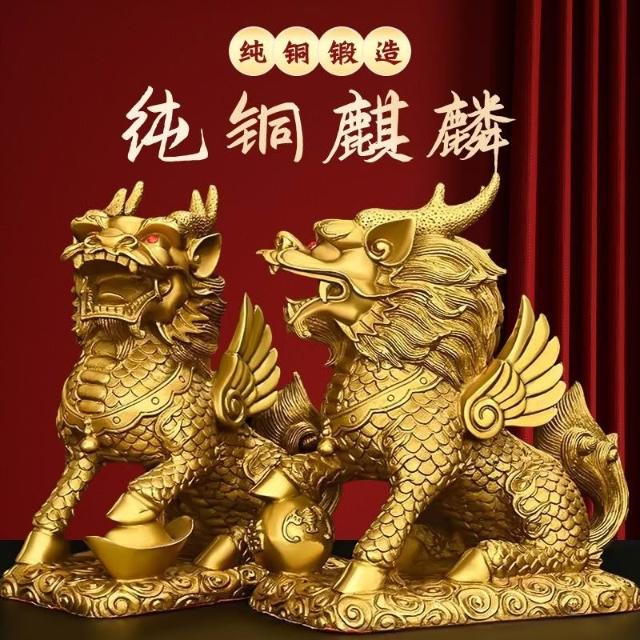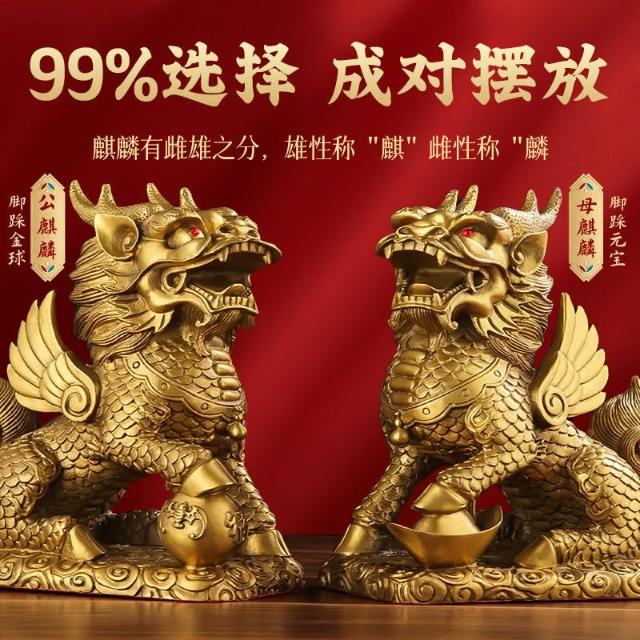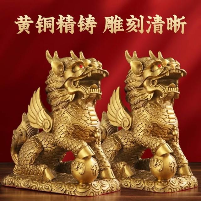 銅麒麟擺件一對純銅家用踩八卦麒麟家居辦公室桌裝飾客廳