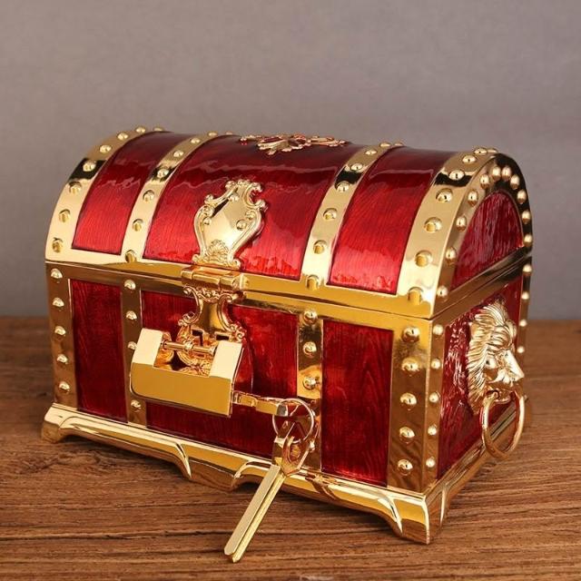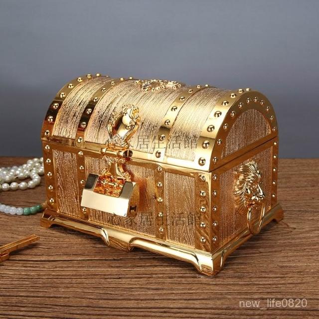 藏寶箱 神鬼奇航 加勒比 大號 複古中式 結婚慶 珠寶箱 閤金質手飾品 收納盒子 帶鎖 海盜 首飾盒 收納 飾品收納