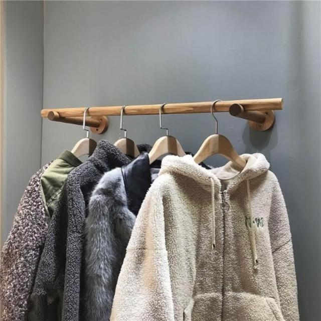服裝店上牆壁掛展示架 木棍衣桿 側掛晾衣架 女裝陳列架 牆上置衣架 童裝店貨架 服飾店掛衣桿 吊衣桿 壁掛衣架 掛衣架