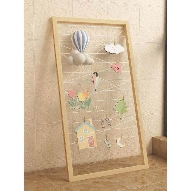 附發票~ 網片 鐵網格 背景牆 照片牆 幼兒園裝飾架收納 實木麻繩掛飾相片框照片展示架落地式 網格背景牆