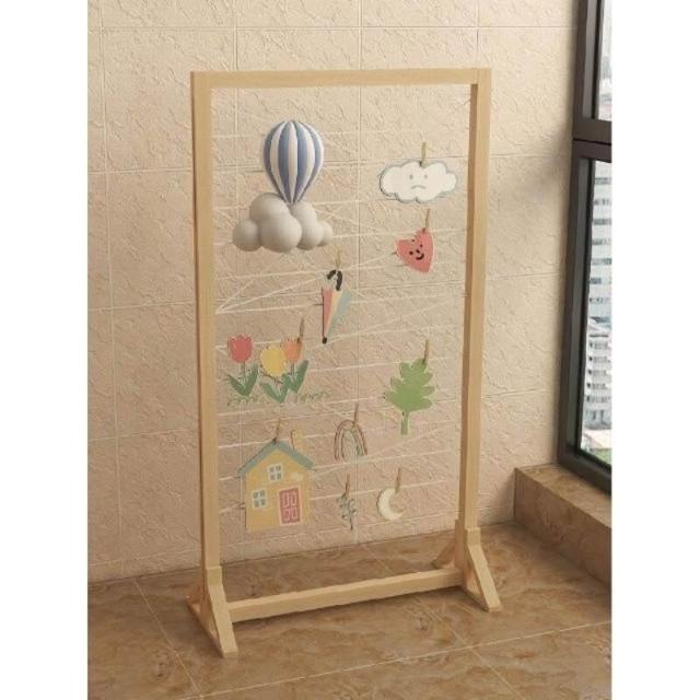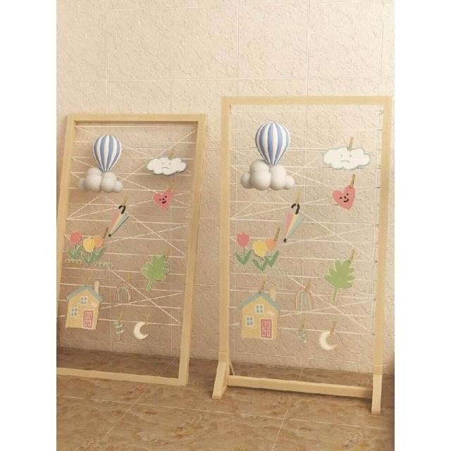附發票~ 網片 鐵網格 背景牆 照片牆 幼兒園裝飾架收納 實木麻繩掛飾相片框照片展示架落地式 網格背景牆