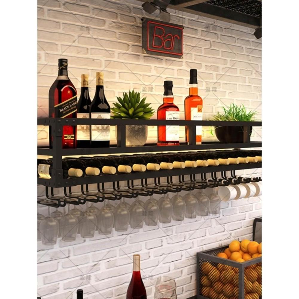 酒吧牆壁酒架 吧台牆上弔架 紅酒杯杯架 倒掛餐廳懸挂紅酒架 酒櫃置物架輕奢 紅酒杯架 吊架 紅酒展示架 懸掛杯架