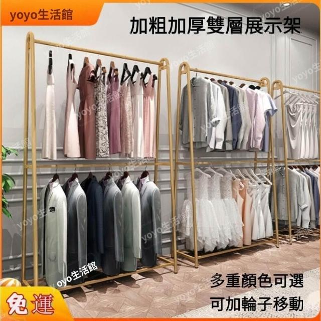 🔥限時特惠 🔥免運 服裝店展示架 雙層掛衣架 落地式掛衣架 童裝陳列架 雙杆衣架 金色婚紗架 衣服架 掛衣桿 多種顏色