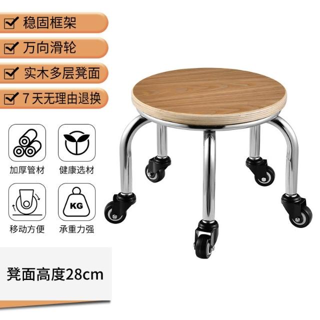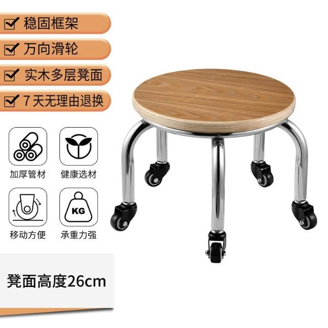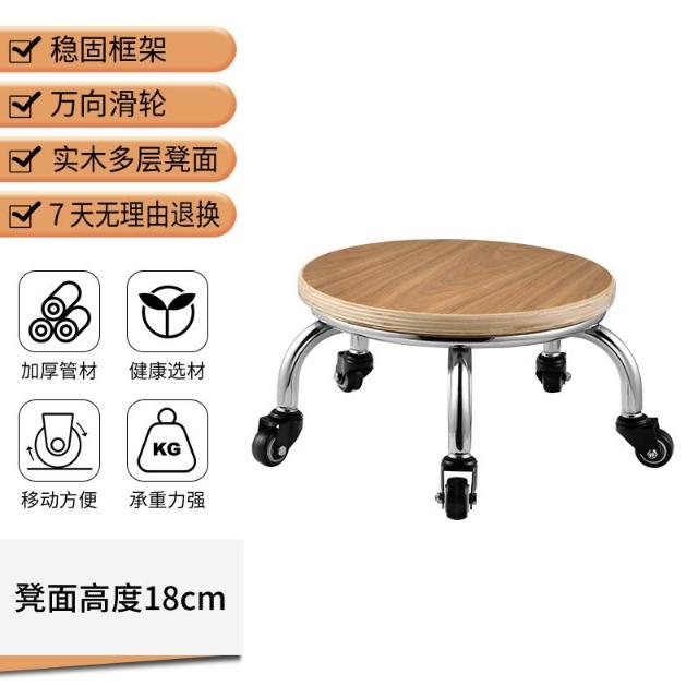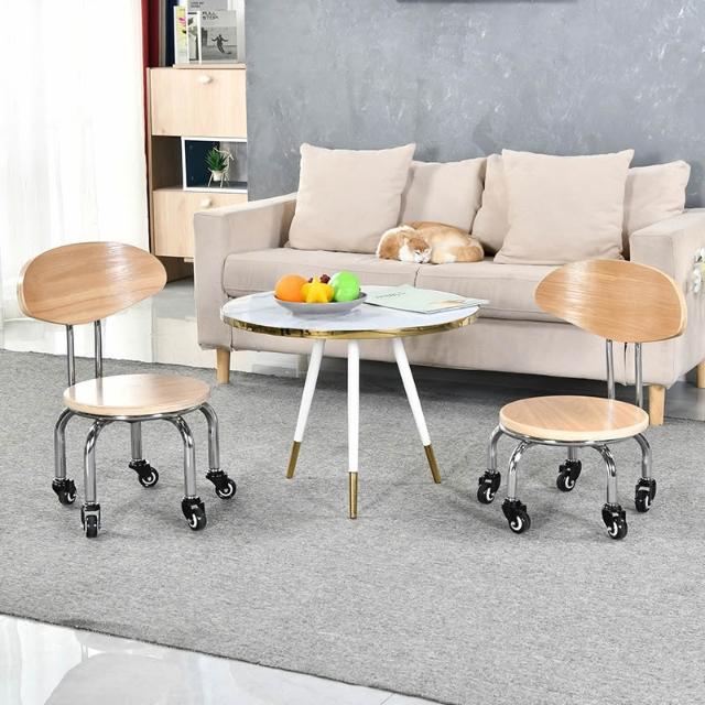 移动现代带轮实木小凳子 矮凳 简约滑轮凳 圆凳 椅皮沙发凳 修脚凳家具 滑輪凳 滑輪矮凳 美甲凳 移動沙發凳 帶輪小凳子