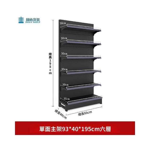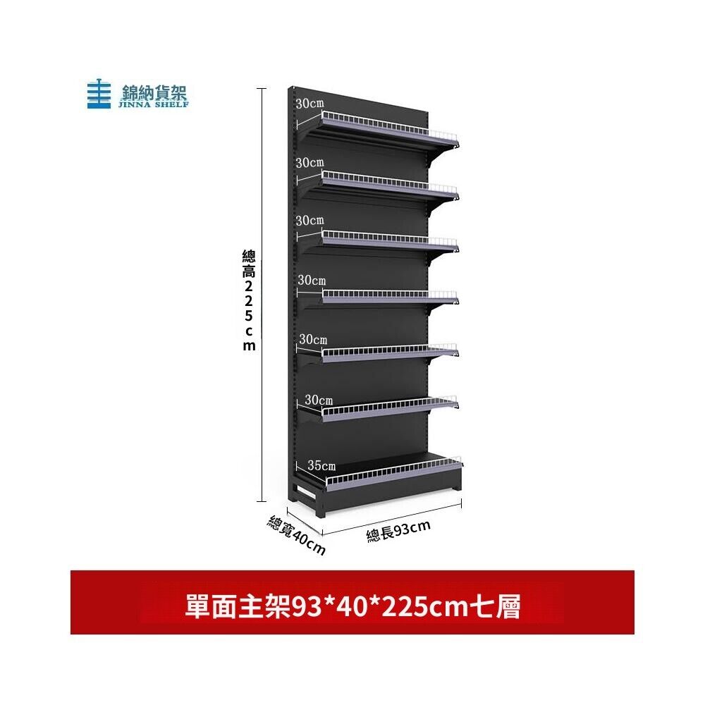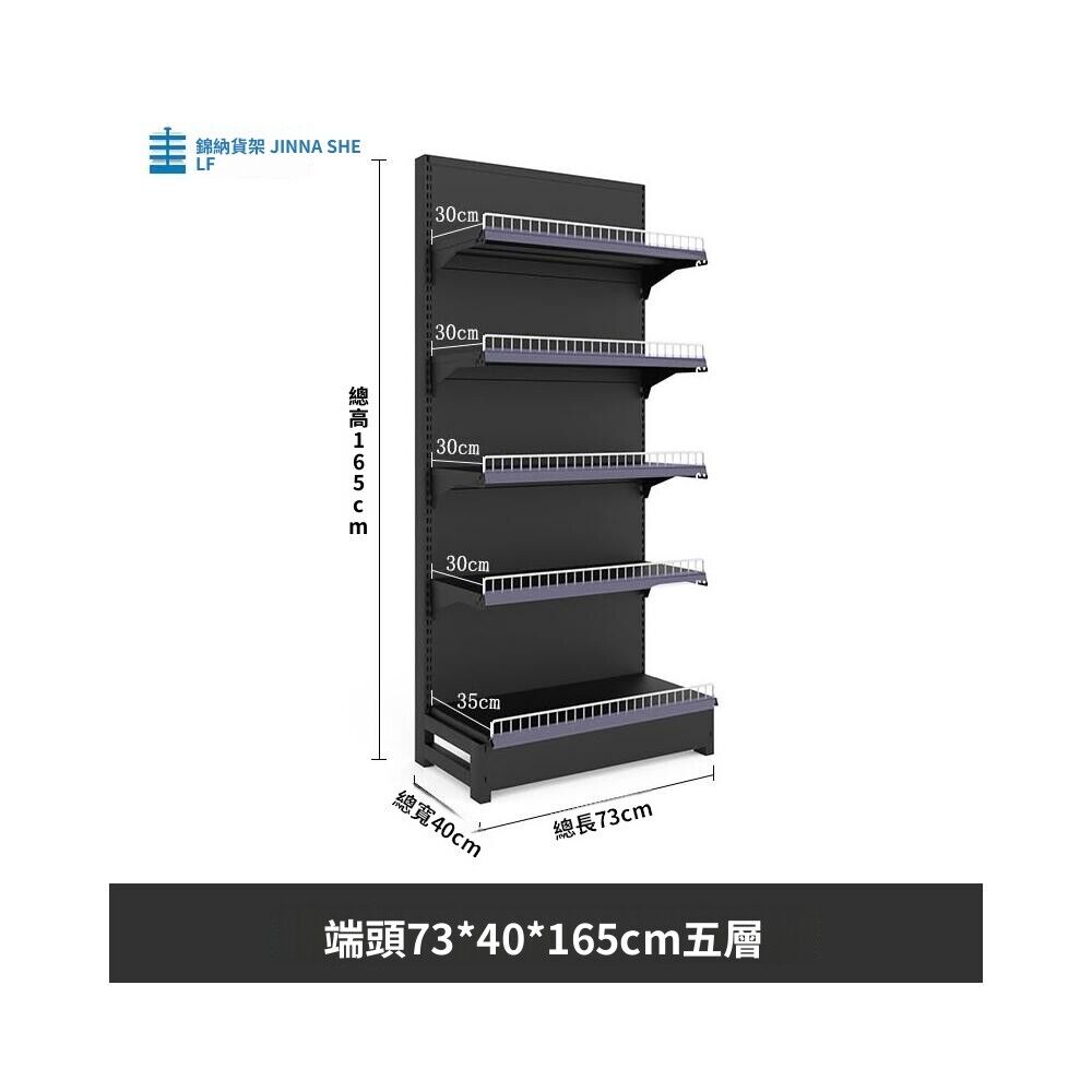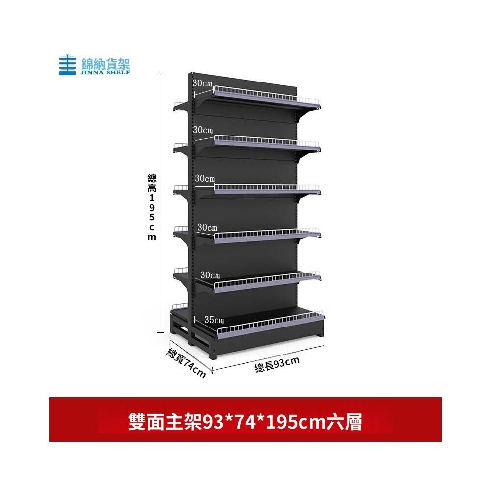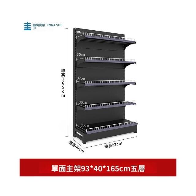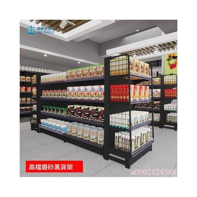 錦納磨砂黑超市貨架 帶護欄多功能鋼架 小賣部便利店展示架 單面雙面貨架 超市多層貨架 超大空間貨物收納架