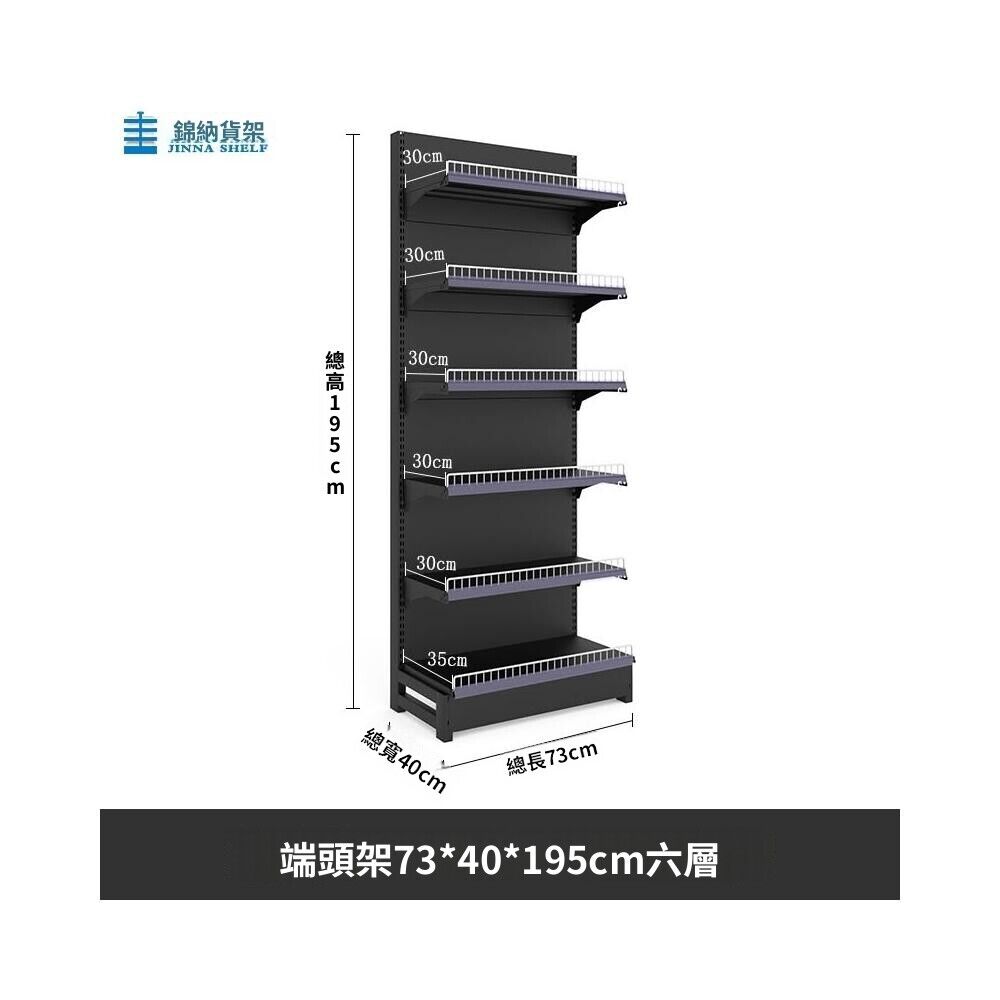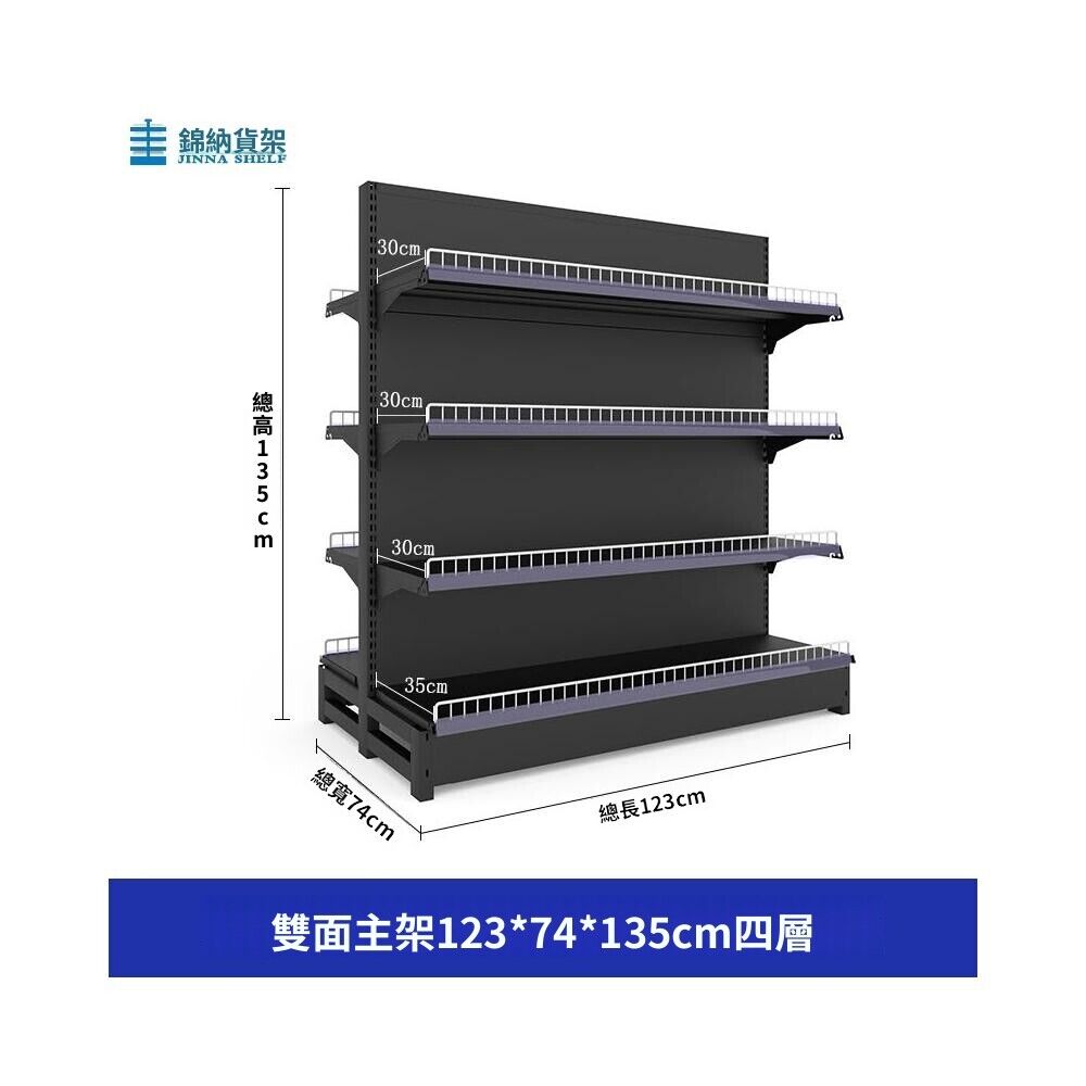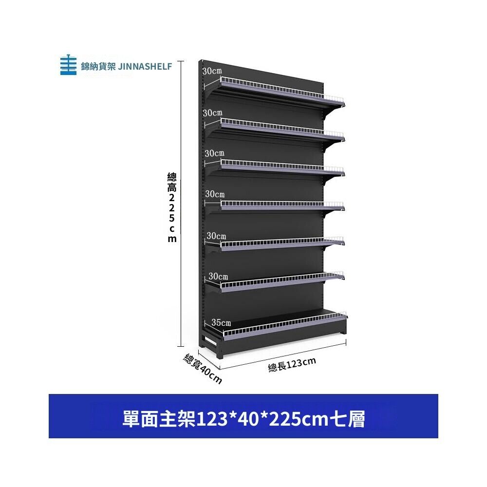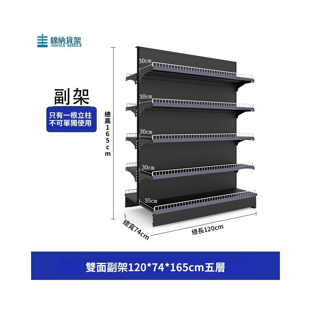 錦納磨砂黑超市貨架 帶護欄多功能鋼架 小賣部便利店展示架 單面雙面貨架 超市多層貨架 超大空間貨物收納架