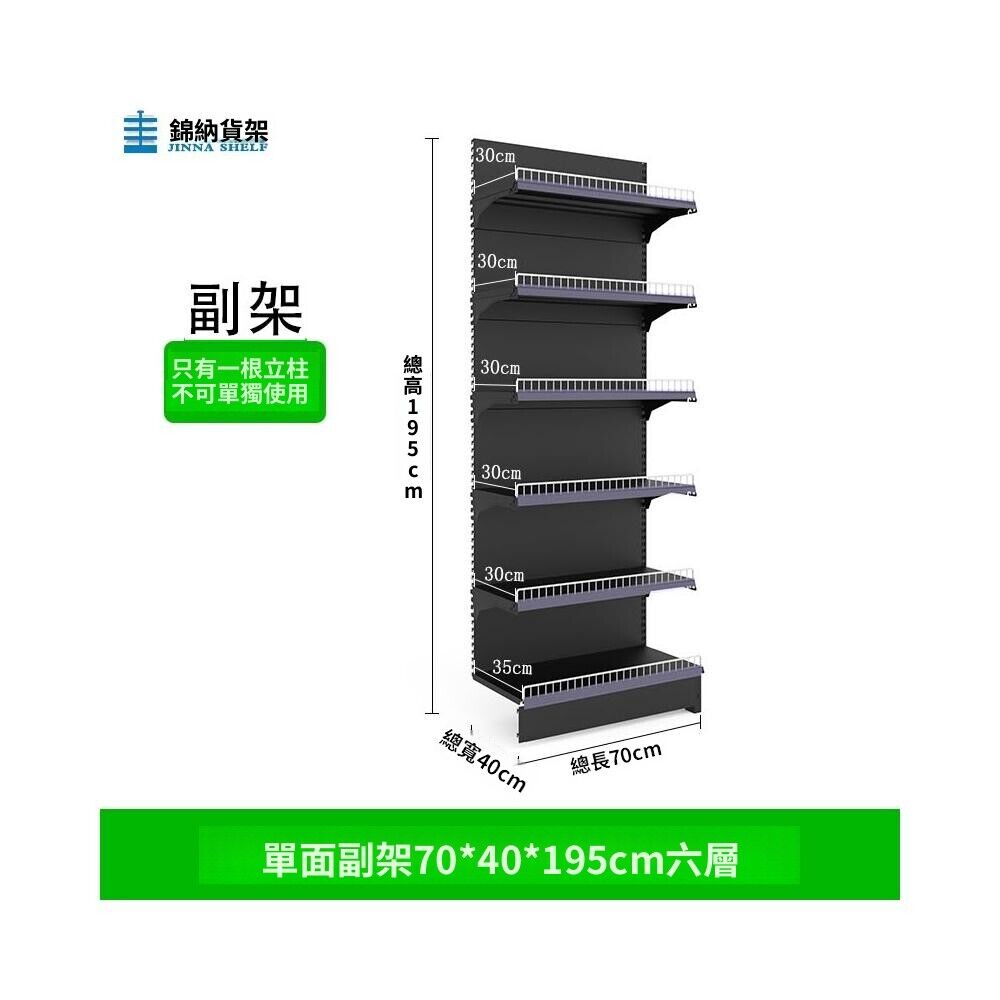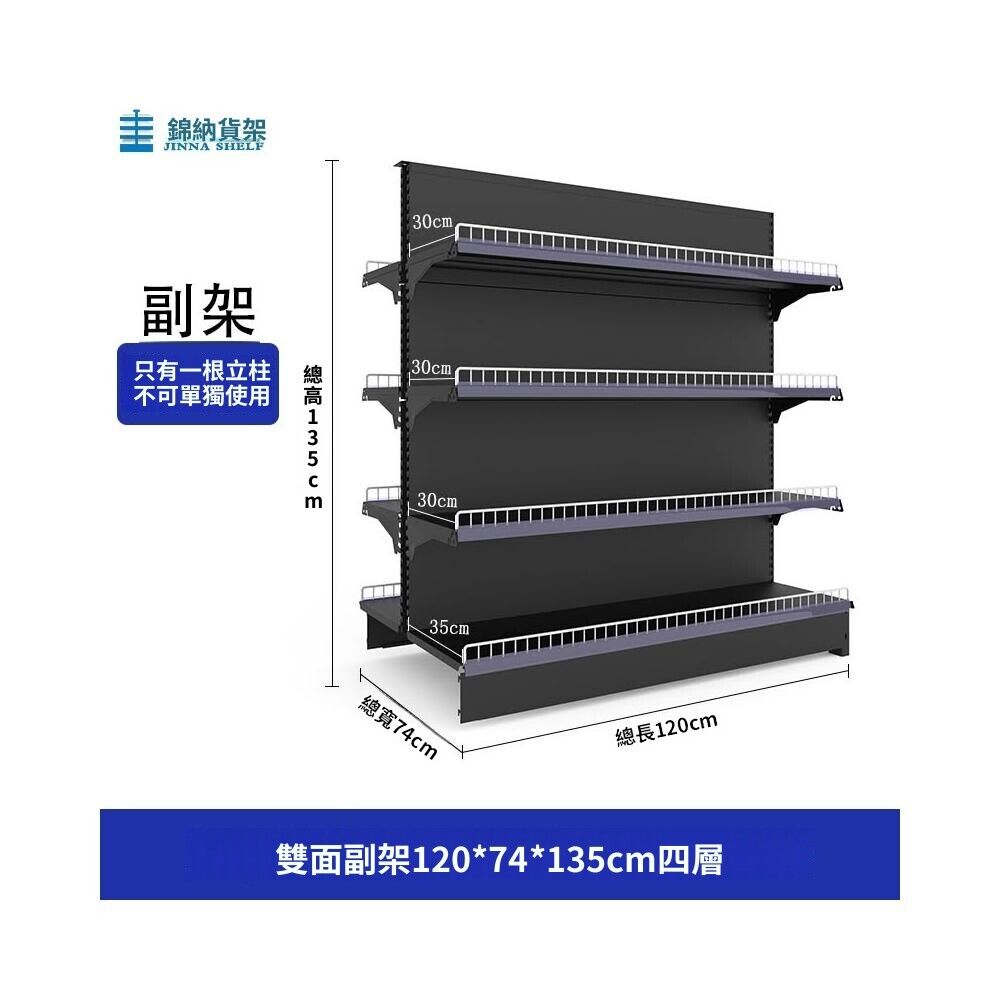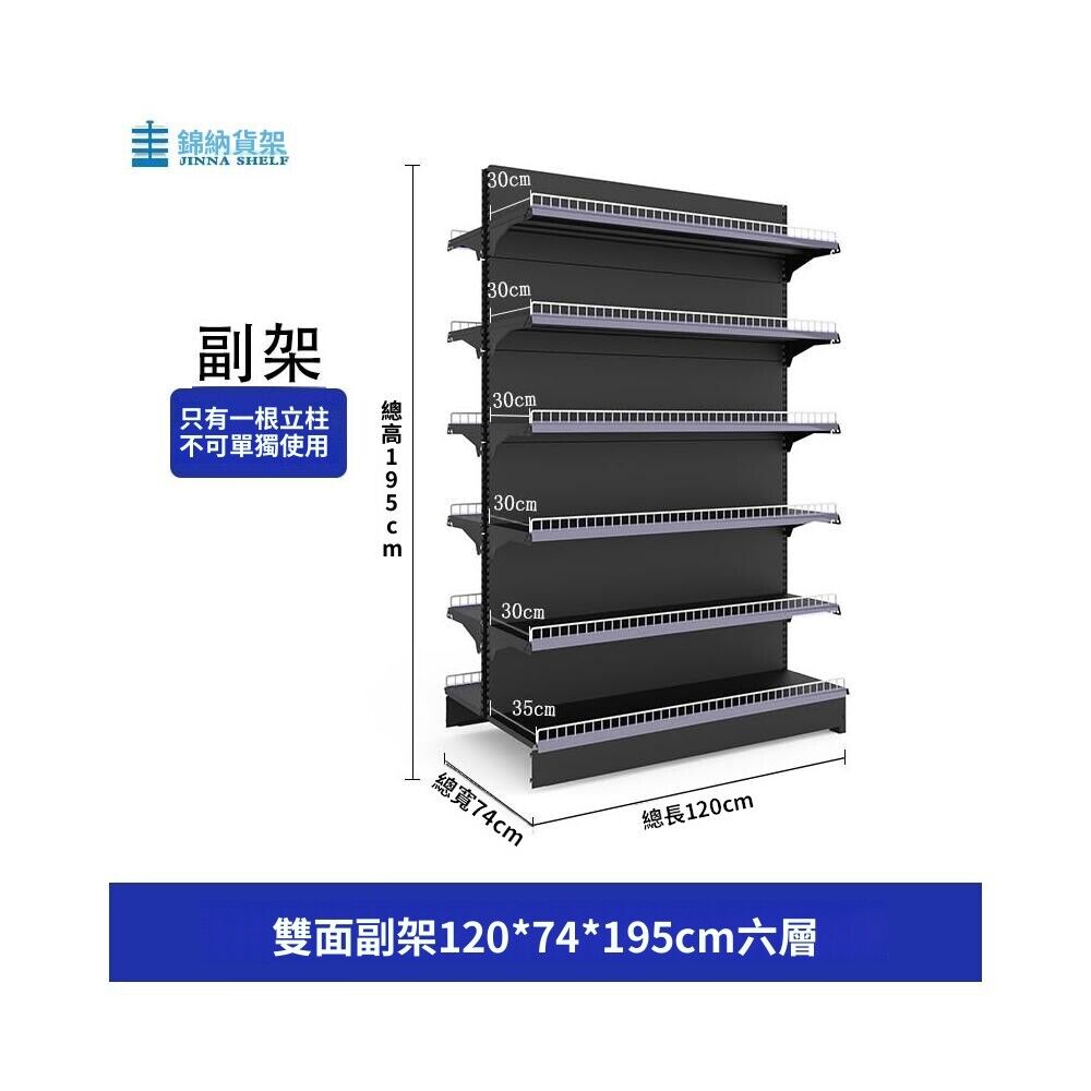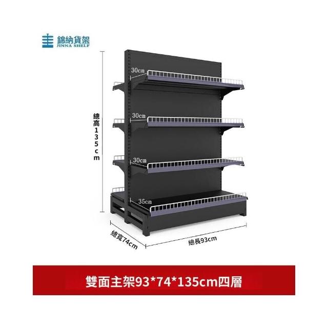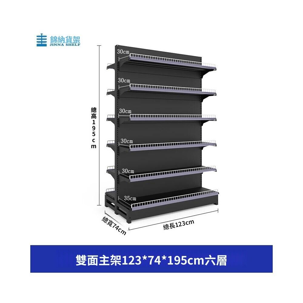 錦納磨砂黑超市貨架 帶護欄多功能鋼架 小賣部便利店展示架 單面雙面貨架 超市多層貨架 超大空間貨物收納架