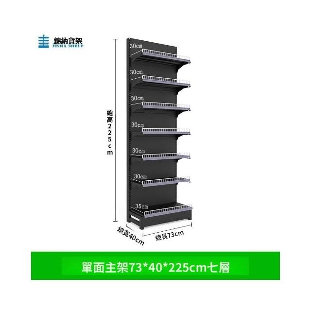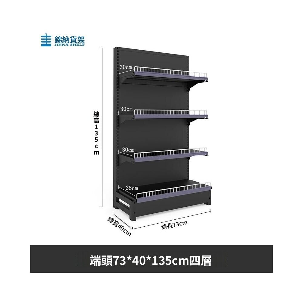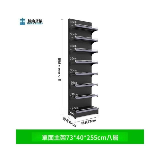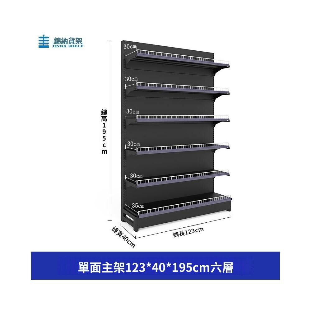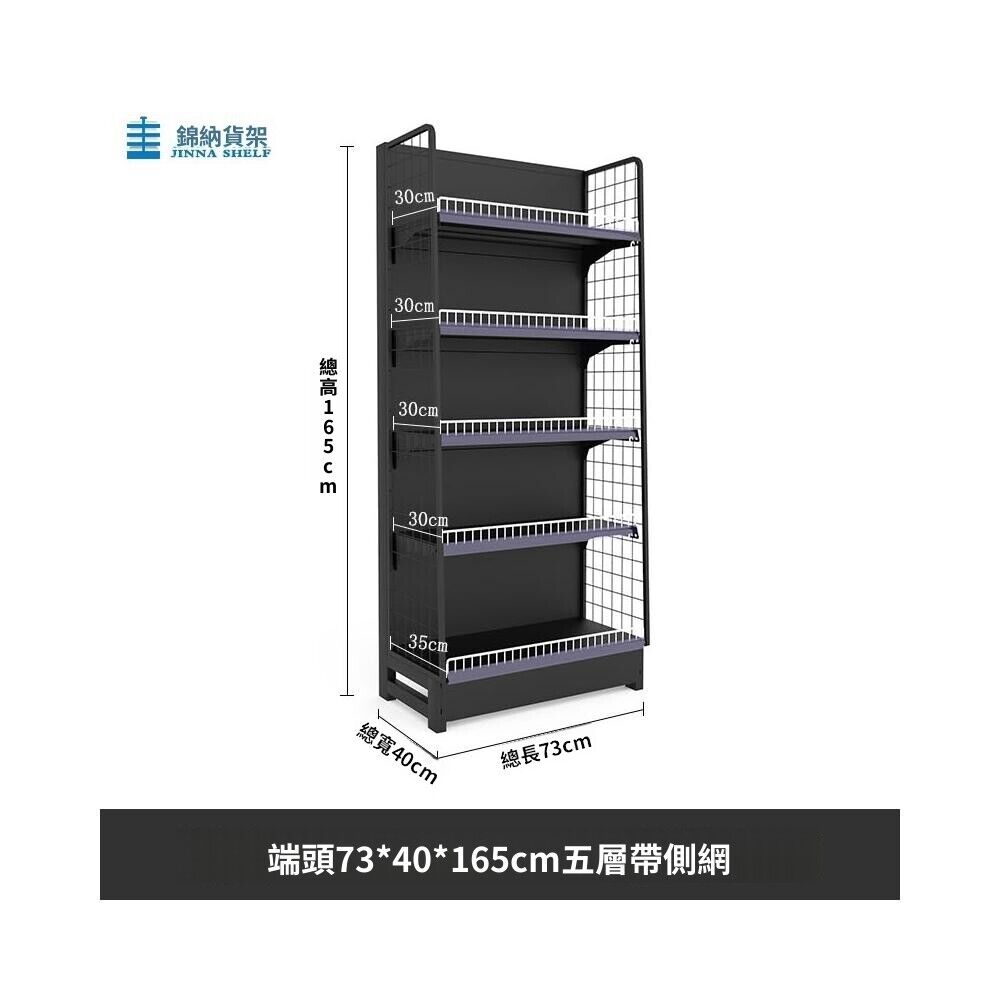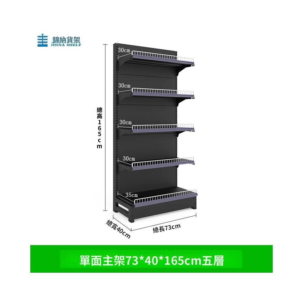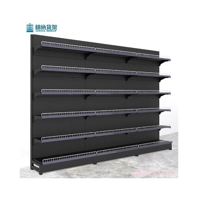 錦納磨砂黑超市貨架 帶護欄多功能鋼架 小賣部便利店展示架 單面雙面貨架 超市多層貨架 超大空間貨物收納架