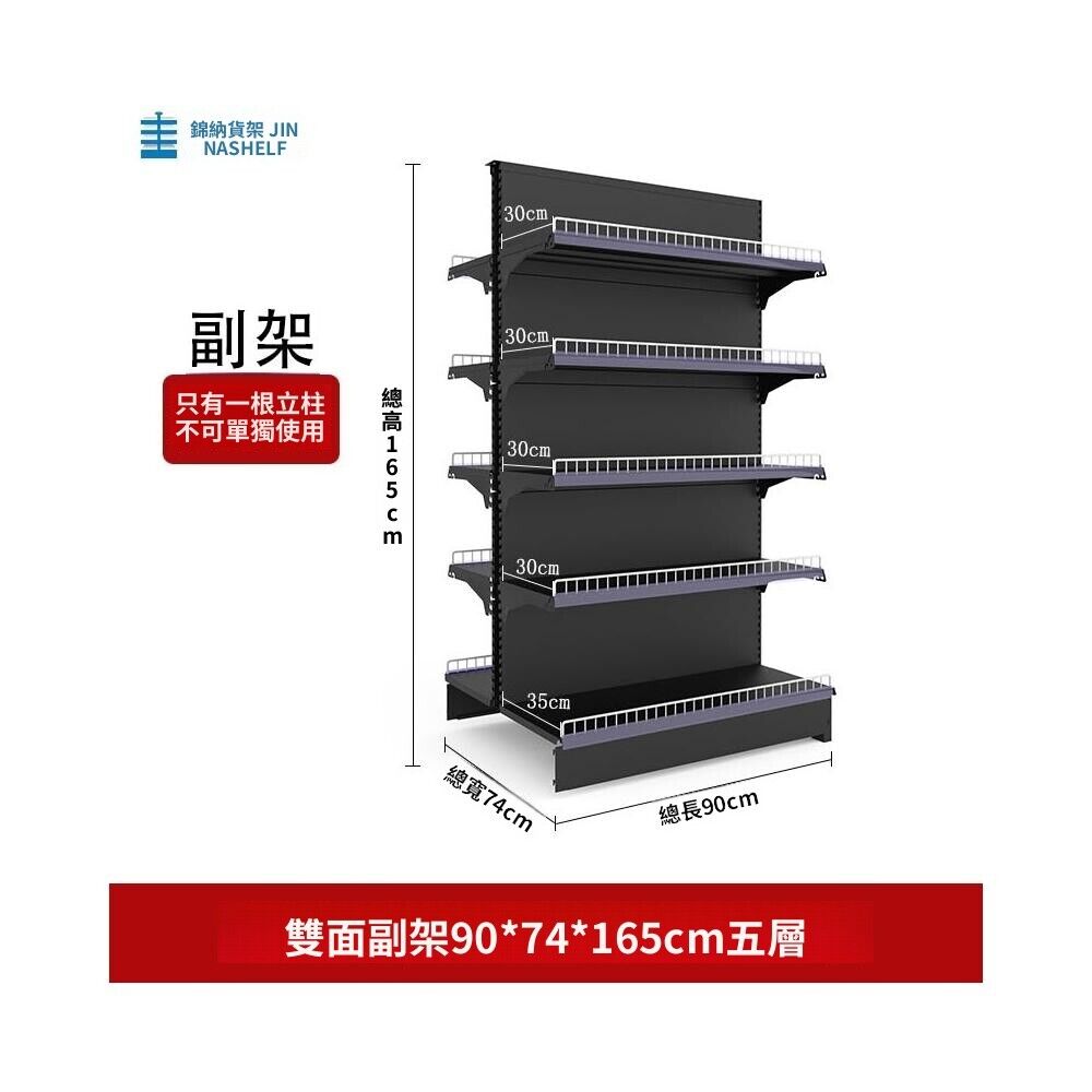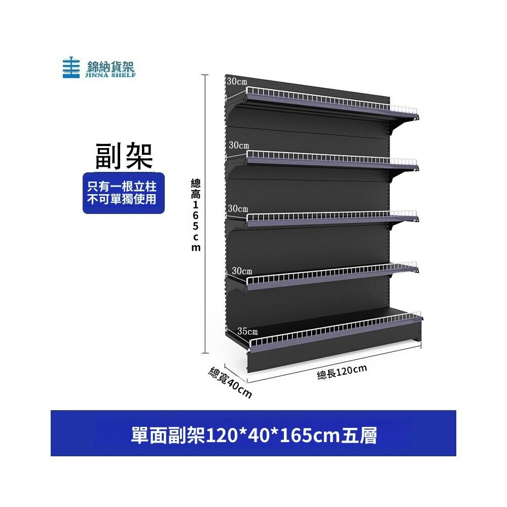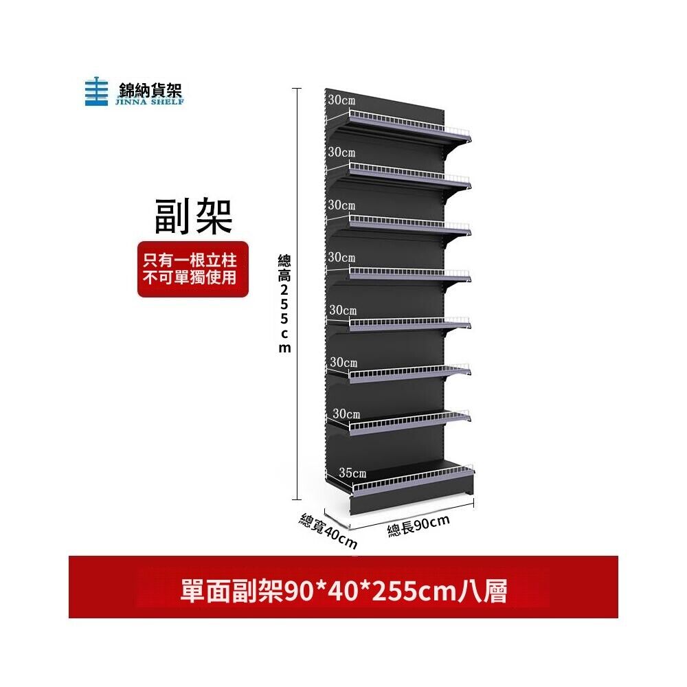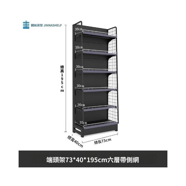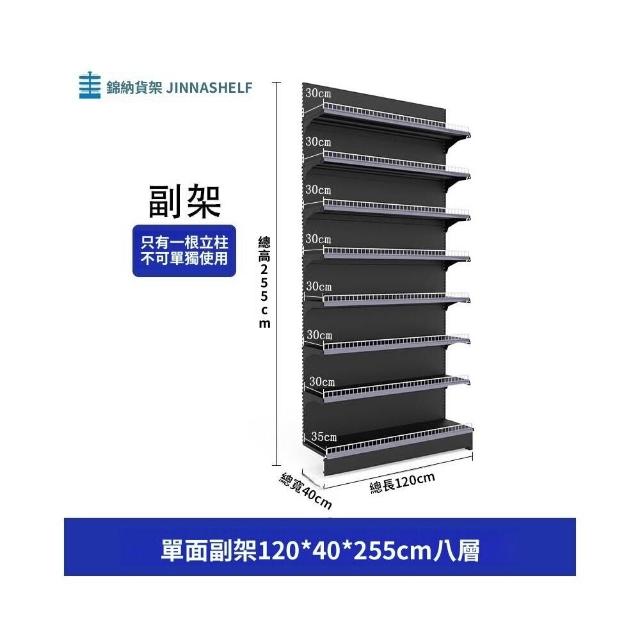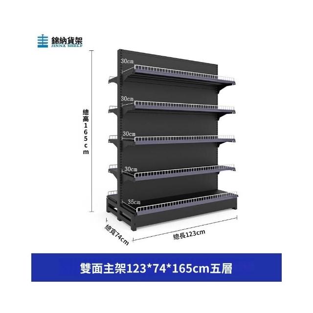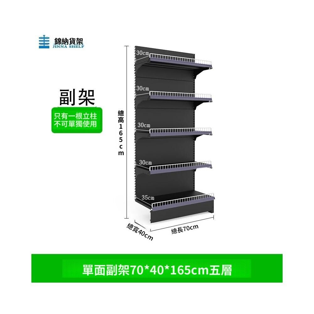 錦納磨砂黑超市貨架 帶護欄多功能鋼架 小賣部便利店展示架 單面雙面貨架 超市多層貨架 超大空間貨物收納架