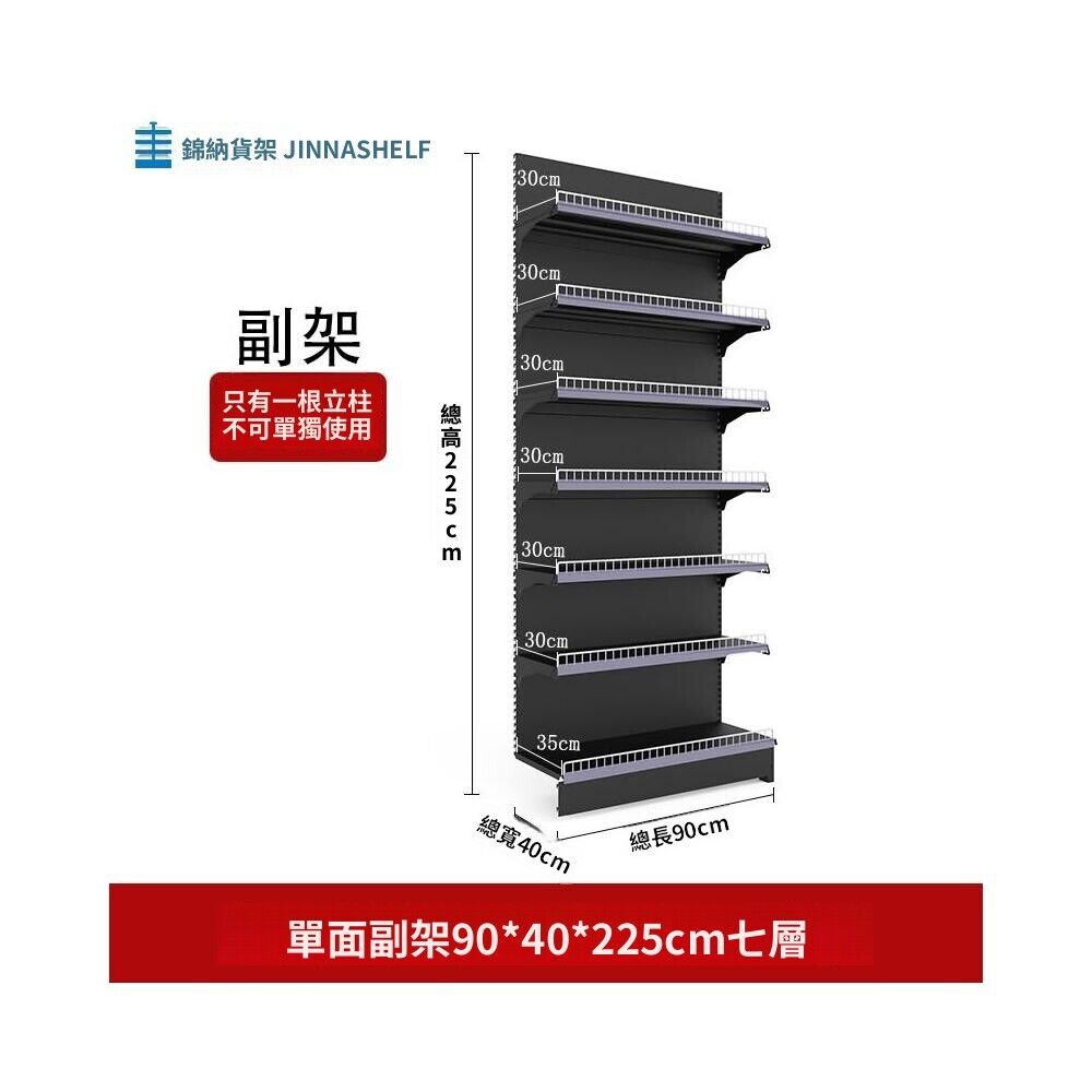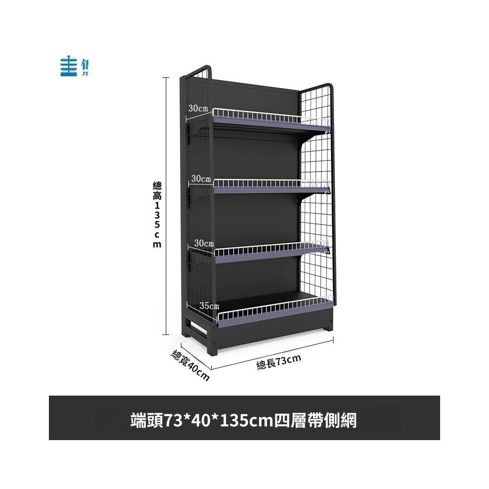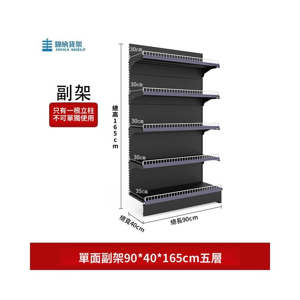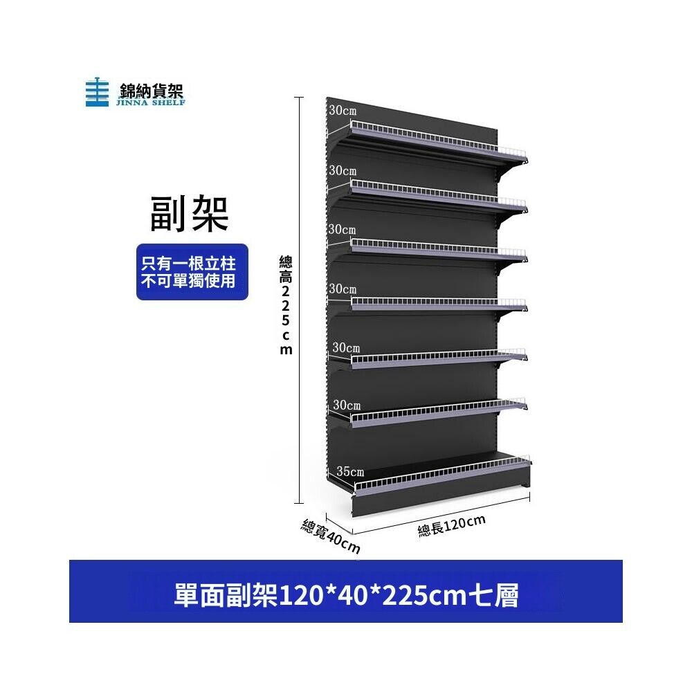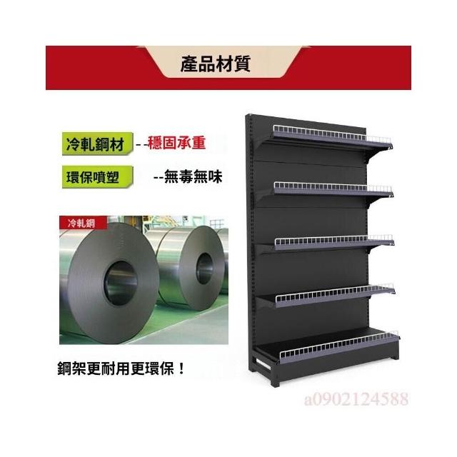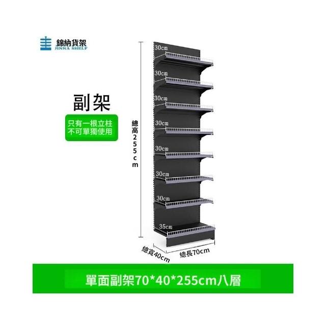 錦納磨砂黑超市貨架 帶護欄多功能鋼架 小賣部便利店展示架 單面雙面貨架 超市多層貨架 超大空間貨物收納架