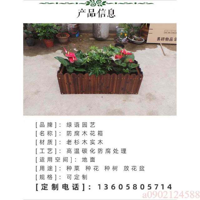 防腐木花箱 特大長方形花盆 陽台種菜盆 碳化實木柵欄種植箱 多肉花槽