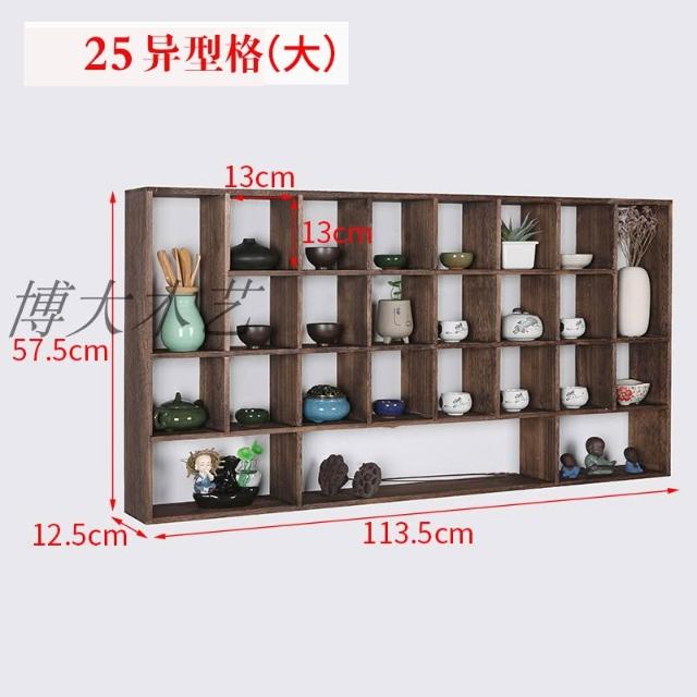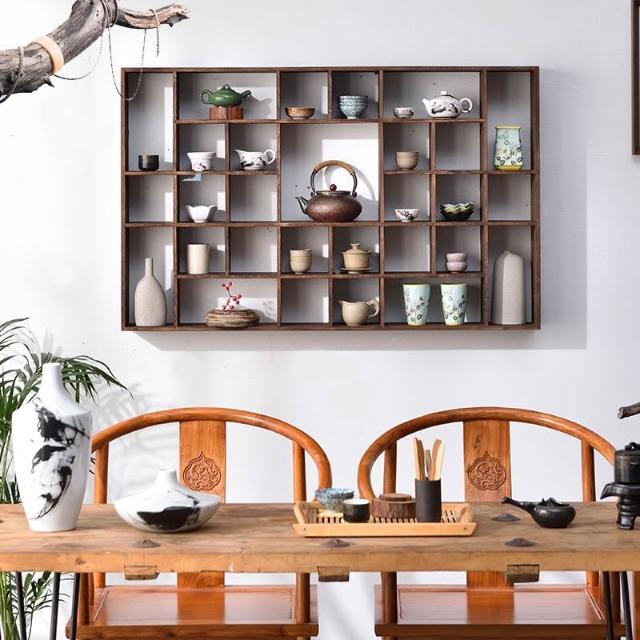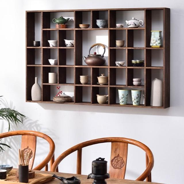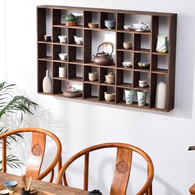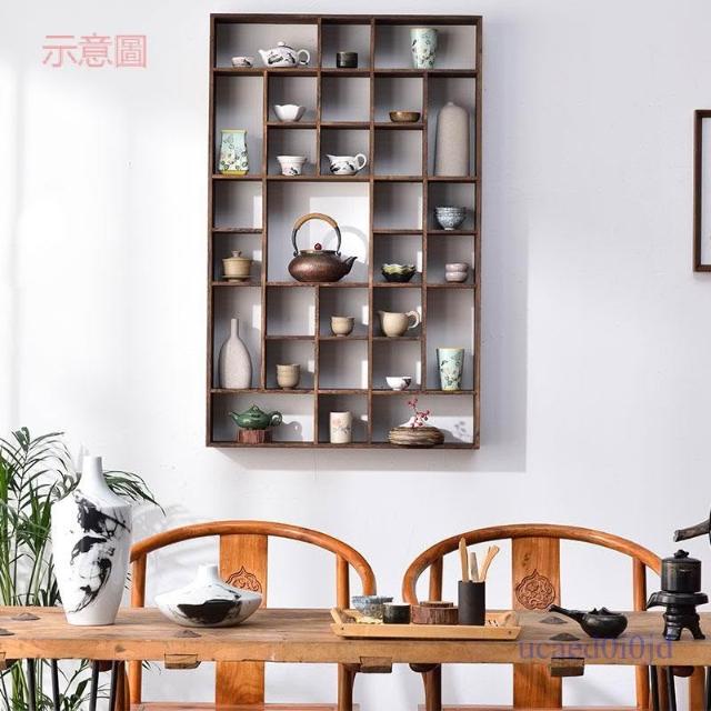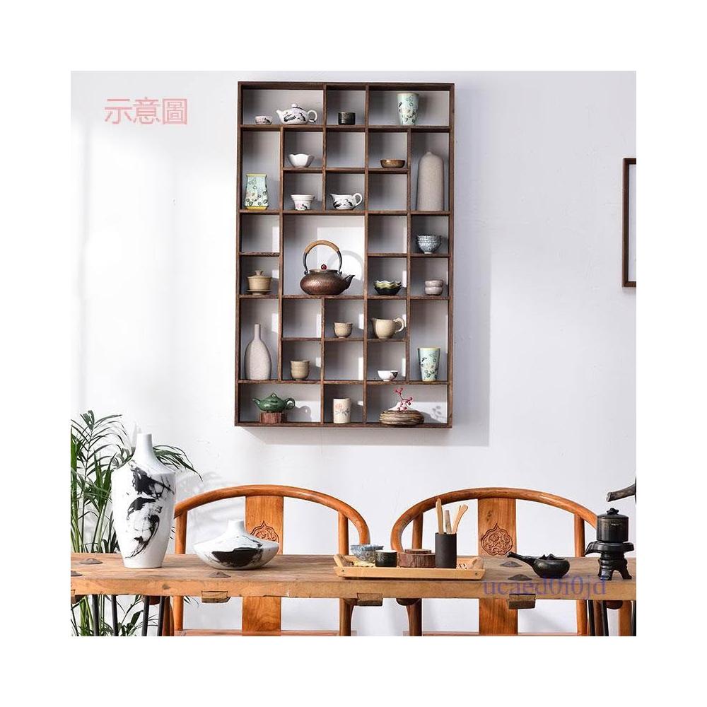 附發票~茶杯收納架 實木多寶閣茶杯架子 茶壺茶具收納架 置物壁掛展示架 中式復古茶架 48格