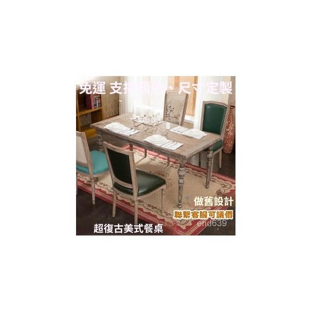 免運 可定制尺寸顏色 美式鄉村 餐桌組合 實木桌 復古做舊 拉絲松木餐桌 茶幾餐廳 簡約長方桌 美式餐桌椅組合