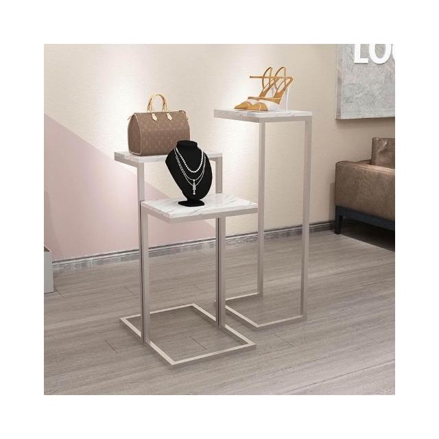 服裝店鐵藝櫥窗展示架簡約高低流水中創意仿石板鞋包首飾落地展臺
