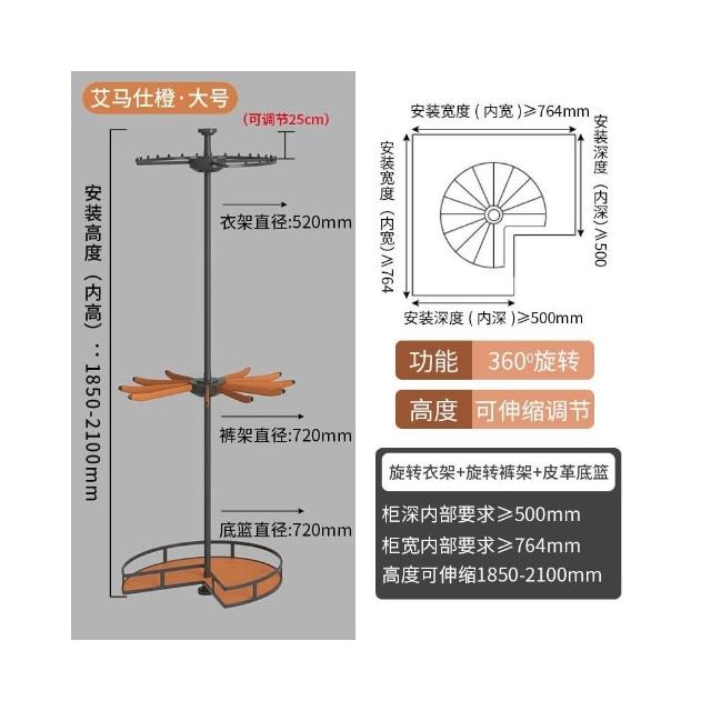 衣櫃轉角旋轉架 旋轉衣架360度衣帽間多功能褲架褲抽拉籃五金配件