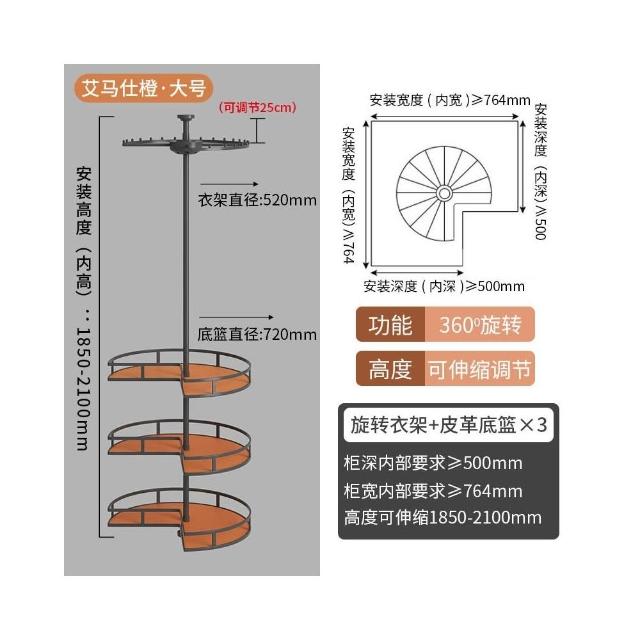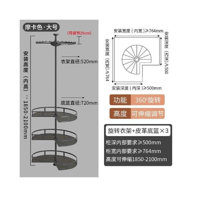 衣櫃轉角旋轉架 旋轉衣架360度衣帽間多功能褲架褲抽拉籃五金配件