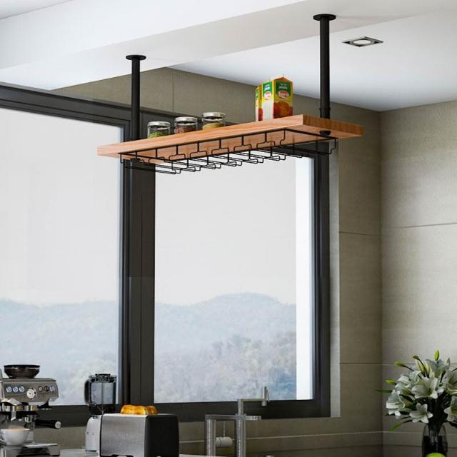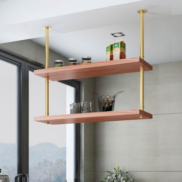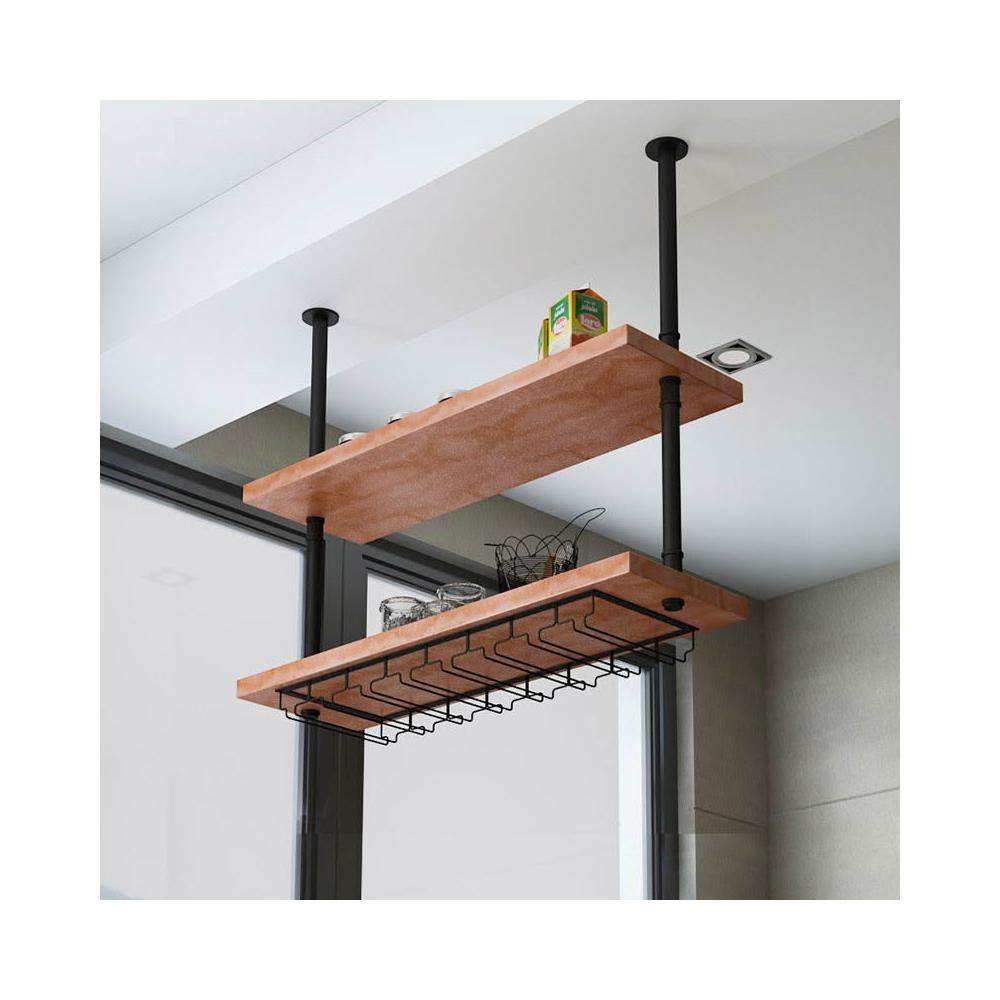前台懸掛鐵藝吊櫃吧檯酒架 置物架工業風吊架 實木吊頂一字隔板裝飾架