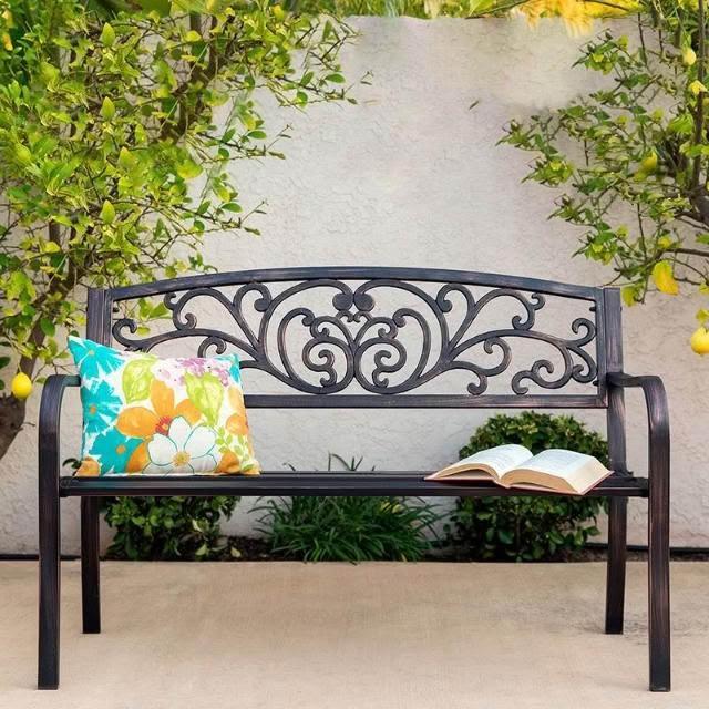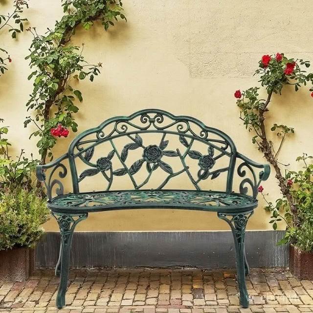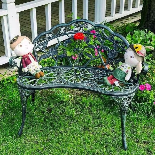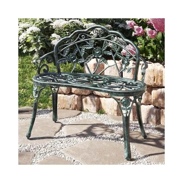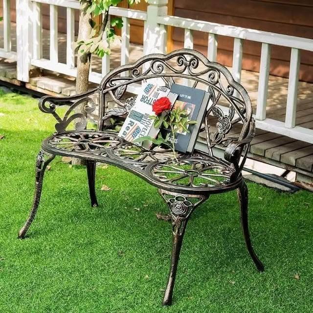 公園椅戶外 長椅子 長凳子 花園庭院 休閑玫瑰花靠背椅子室外 座椅鑄鋁