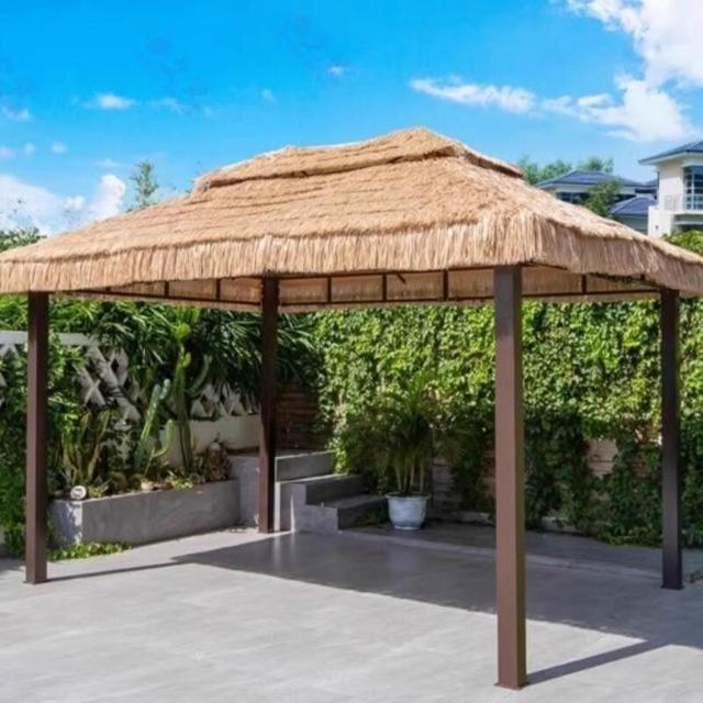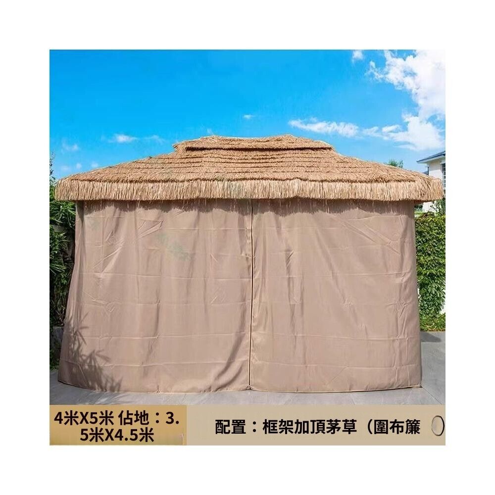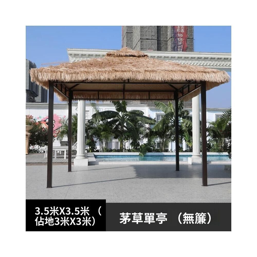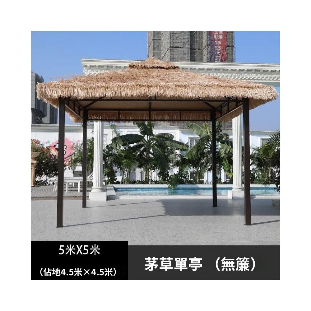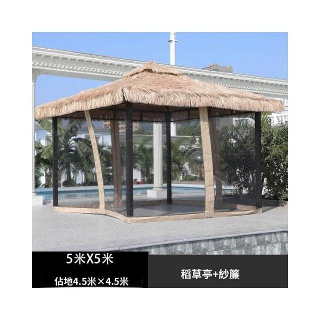 戶外涼亭 防雨餐飲休閒遮陽涼亭仿真茅草屋庭院農家樂露天毛草棚四角茅草亭