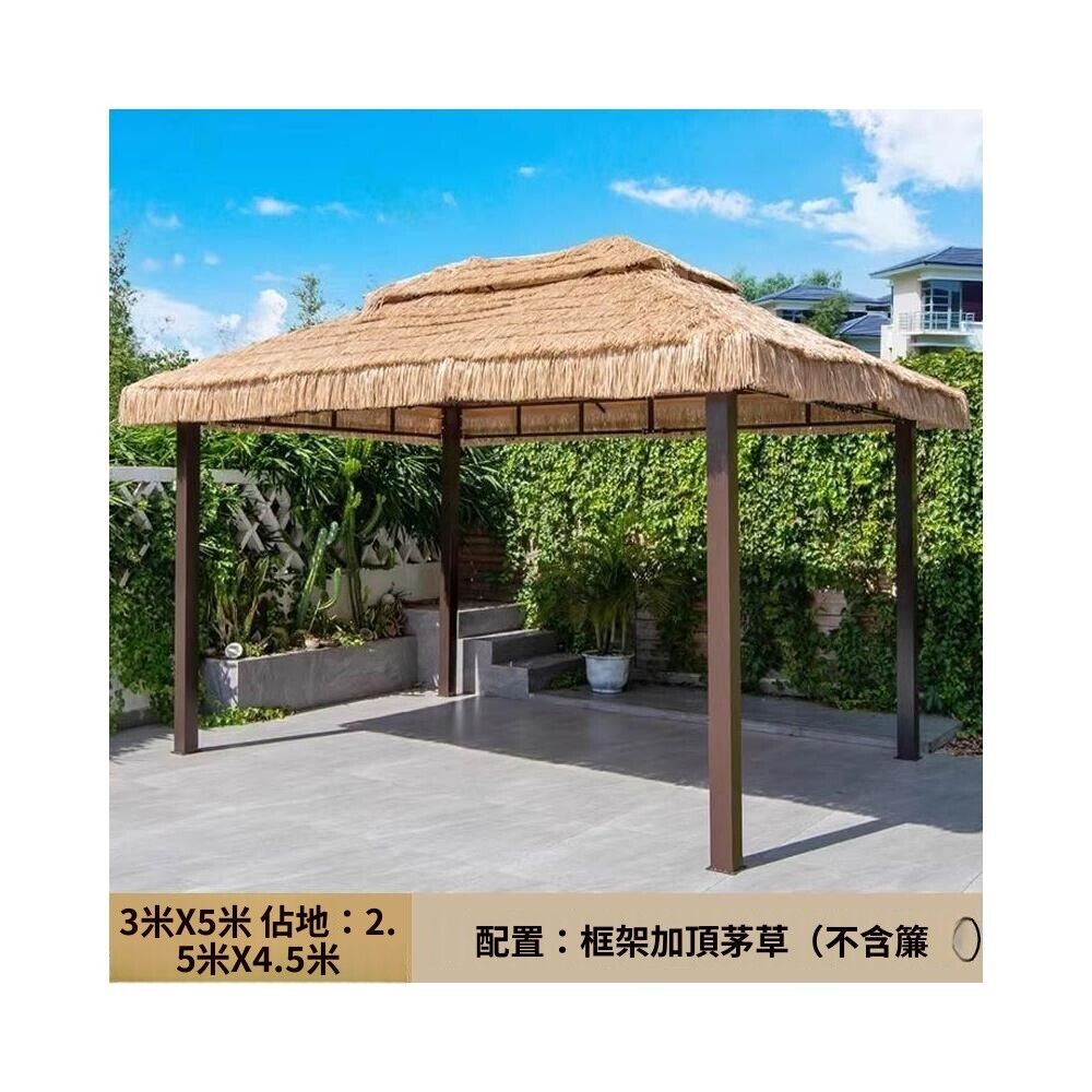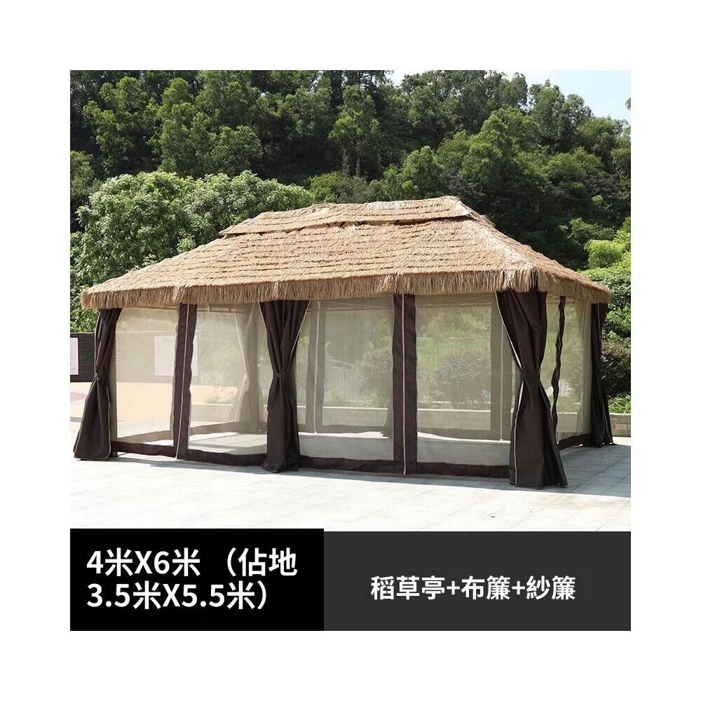 戶外涼亭 防雨餐飲休閒遮陽涼亭仿真茅草屋庭院農家樂露天毛草棚四角茅草亭