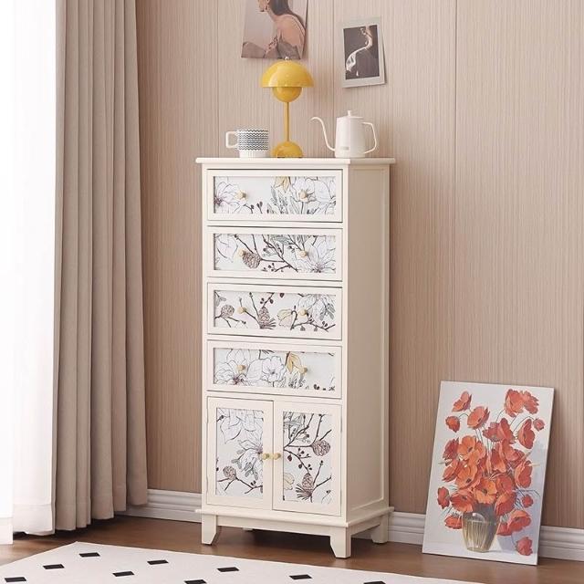 免組裝 免運美式實木鬥櫃客廳複古邊櫃地中海彩繪抽屜儲物收納臥室五鬥櫃