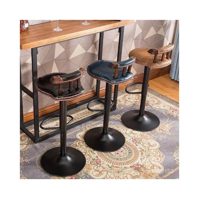 下殺#優選美式酒吧椅復古實木吧台椅升降椅家用高腳凳高凳旋轉椅子靠背凳子 vBcr