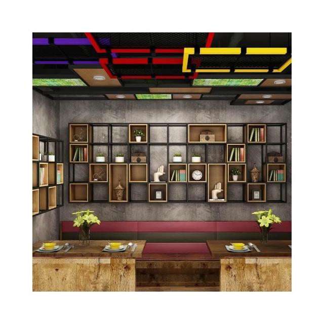 工業風鐵藝牆上置物架 多層書架 實木牆面壁掛置物架 餐廳裝飾展示架 loft儲物架子